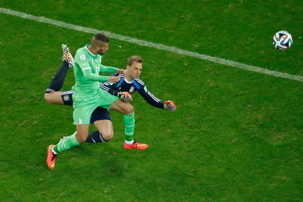 | Trái ngược với dự đoán của giới chuyên môn, các học trò HLV Joachim Loew gặp rất nhiều khó khăn trước lối chơi thiên về thể lực nhưng không kém phần tinh quái của Algeria. |