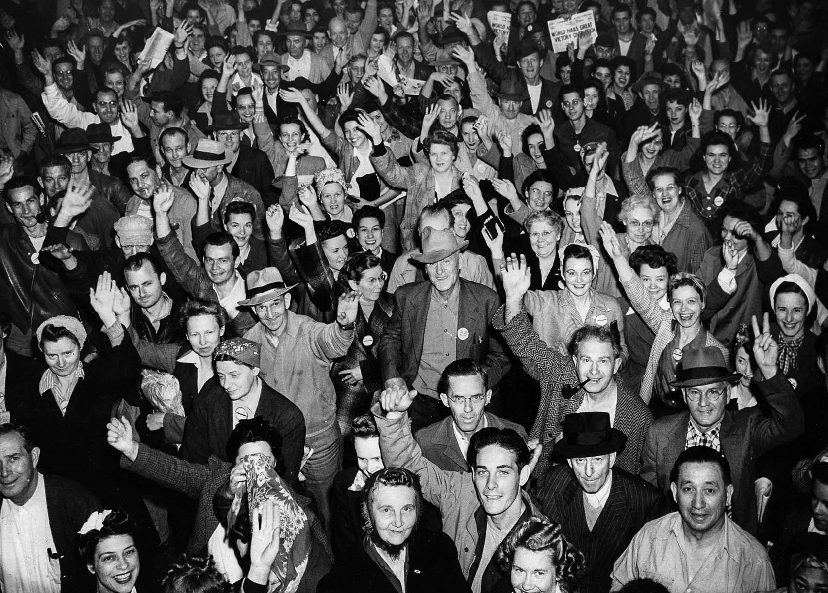 | Công nhân trong nhà máy Lookheed mừng chiến thắng vào ngày 8/5/1945. Tuy nhiên, cuộc chiến vẫn chưa hoàn toàn chấm dứt vì Nhật Bản chưa đầu hàng. Ảnh: Los Angeles Times |