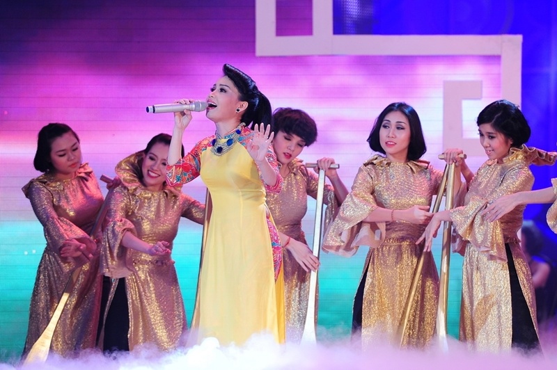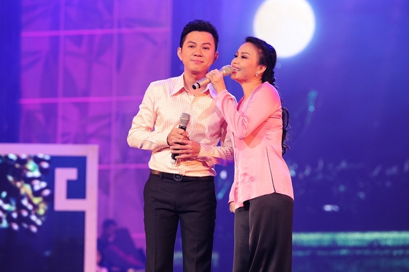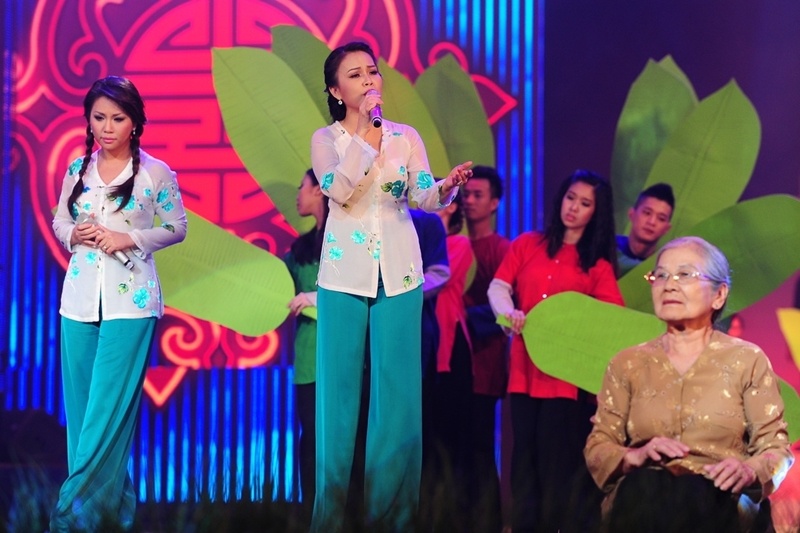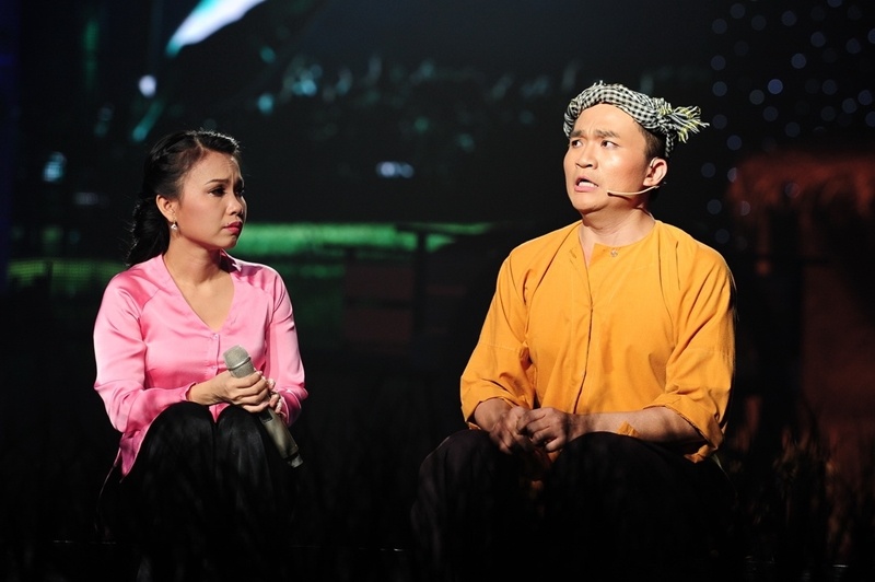 | Cẩm Ly trở lại với bộ áo bà ba quen thuộc. Cô cùng diễn viên Đại Nghĩa trình diễn một trích đoạn kịch Nhớ mẹ rất cảm động. |