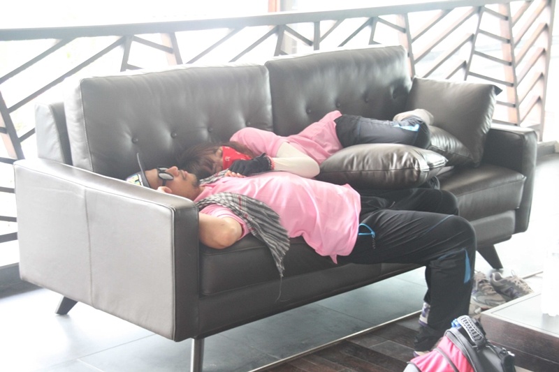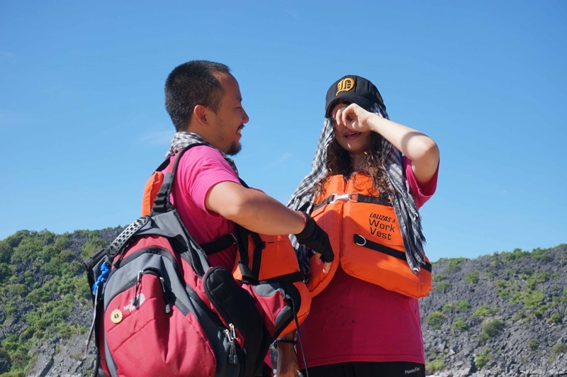 Khi phải leo lên hai chiếc phao to, cũng là lúc Hari có dịp "chọc quê" bạn trai là... chân ngắn.