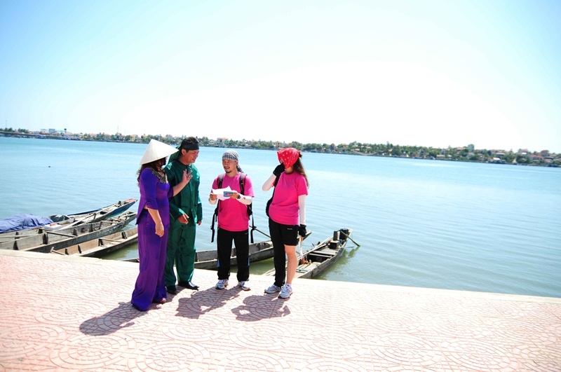 Hari xinh đẹp và duyên dáng trong bộ trang phục của người dân tộc Dao Đỏ. Trong chặng đua này, cô nàng đã được phen đỏ mặt vì bị... tuột quần do mặc không đúng cách.