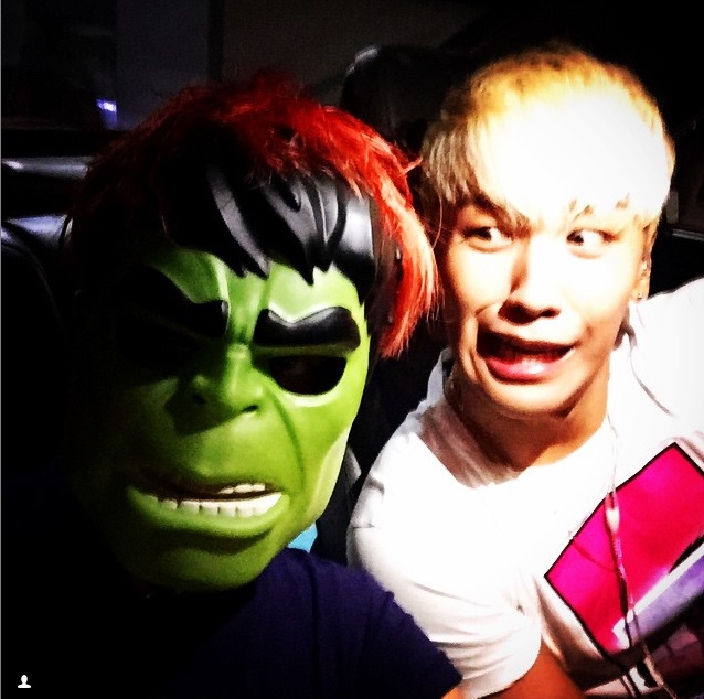 | Seung Ri "đọ sắc" với Người khổng lồ xanh. |