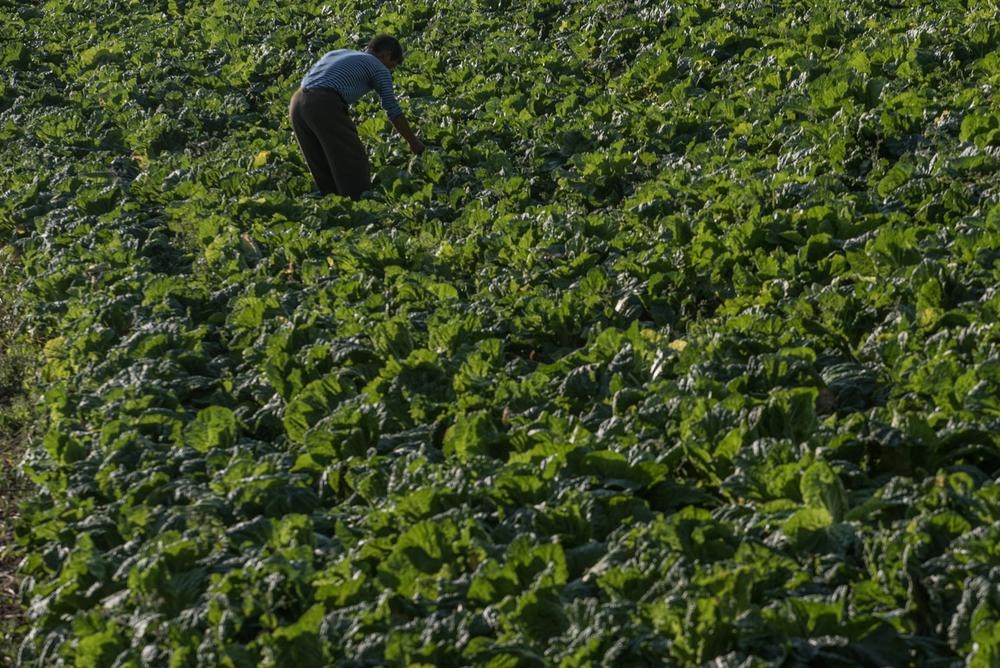 | Vườn bắp cải ở một hợp tác xã gần Kaesong. |