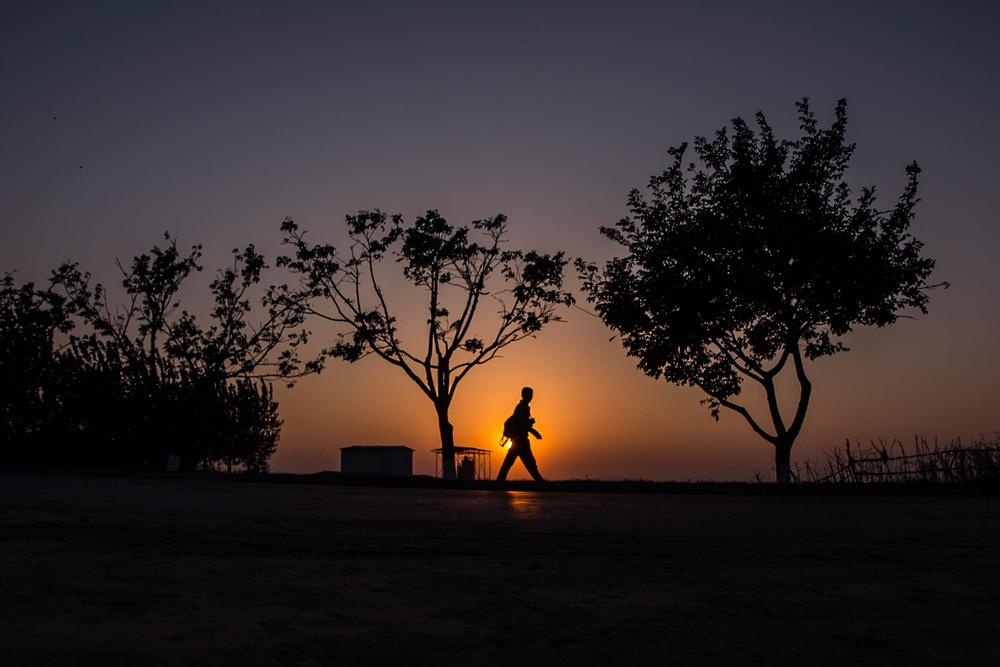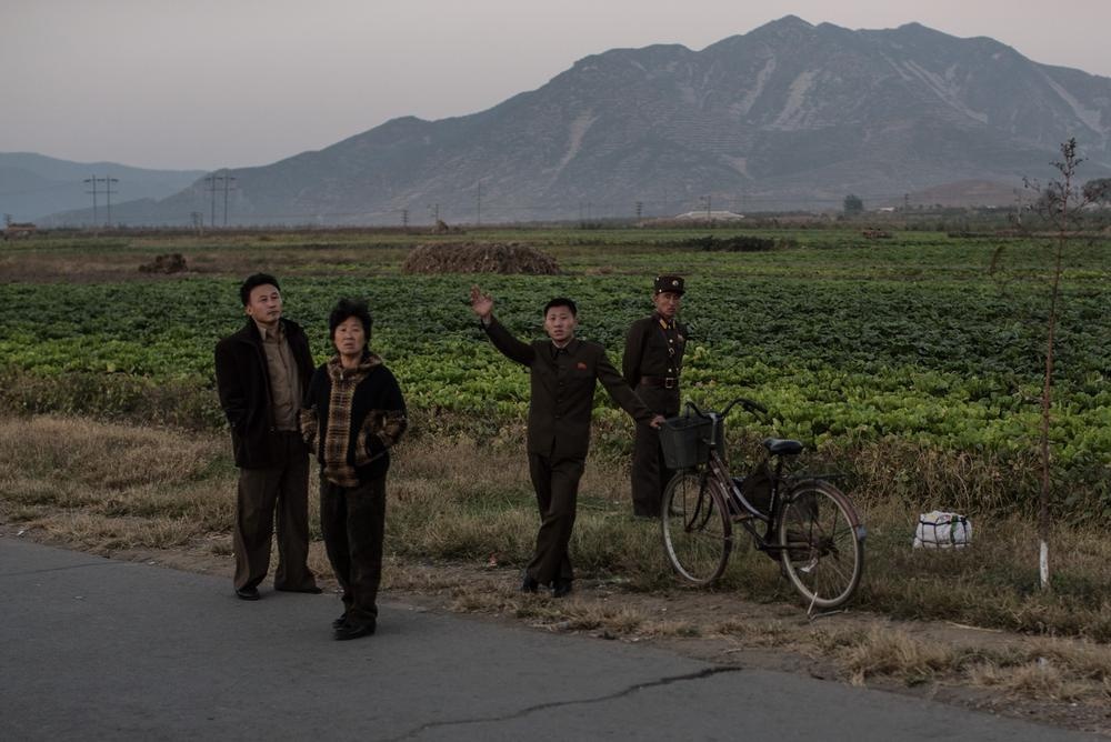 | Học sinh đi bộ về nhà sau giờ học ở miền quê gần thành phố Kaesong, tỉnh Bắc Hwanghae. |
