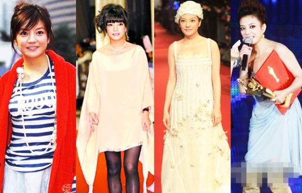 | Gu thời trang quê mùa lòe xòe của Triệu Vy. |