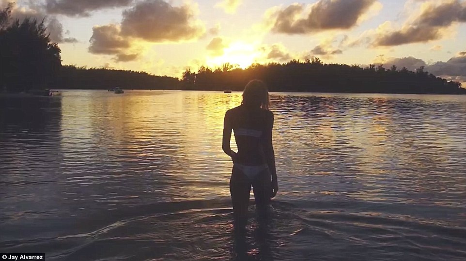 | Những hình ảnh ấn tượng trong clip khiến người xem liên tưởng tới những video quảng cáo, khi Alexis đi bộ qua bể bơi khi hoàng hôn. |
