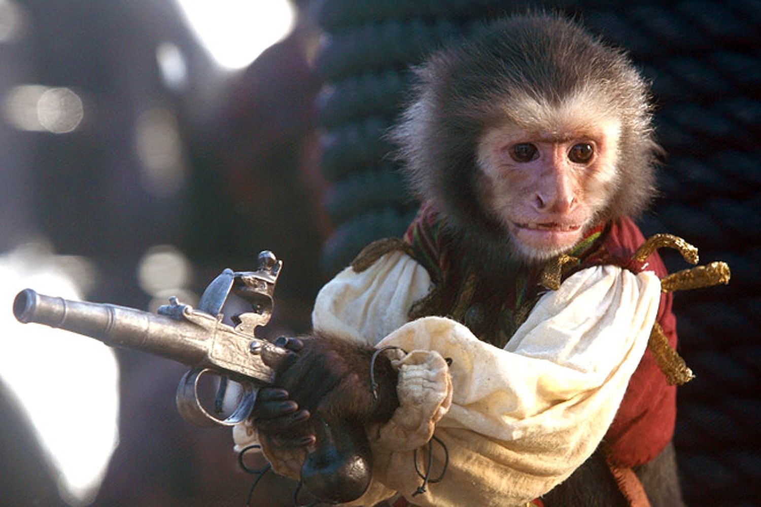 Jack trong loạt Pirates of the Caribbean: Xuất hiện trong tất cả các tập phim Cướp biển Caribê, Jack là chú khỉ giống Capuchin của thuyền trưởng Barbossa. Nó được đặt theo tên của Jack Sparrow, người mà Barbossa luôn coi là đối thủ. Khỉ Jack đã ăn cắp một đồng vàng từ chiếc rương bị nguyền rủa nên trở thành bất tử. Cũng giống như đồng loại, chú rất linh hoạt, thông minh và khéo léo. Ảnh: Disney |