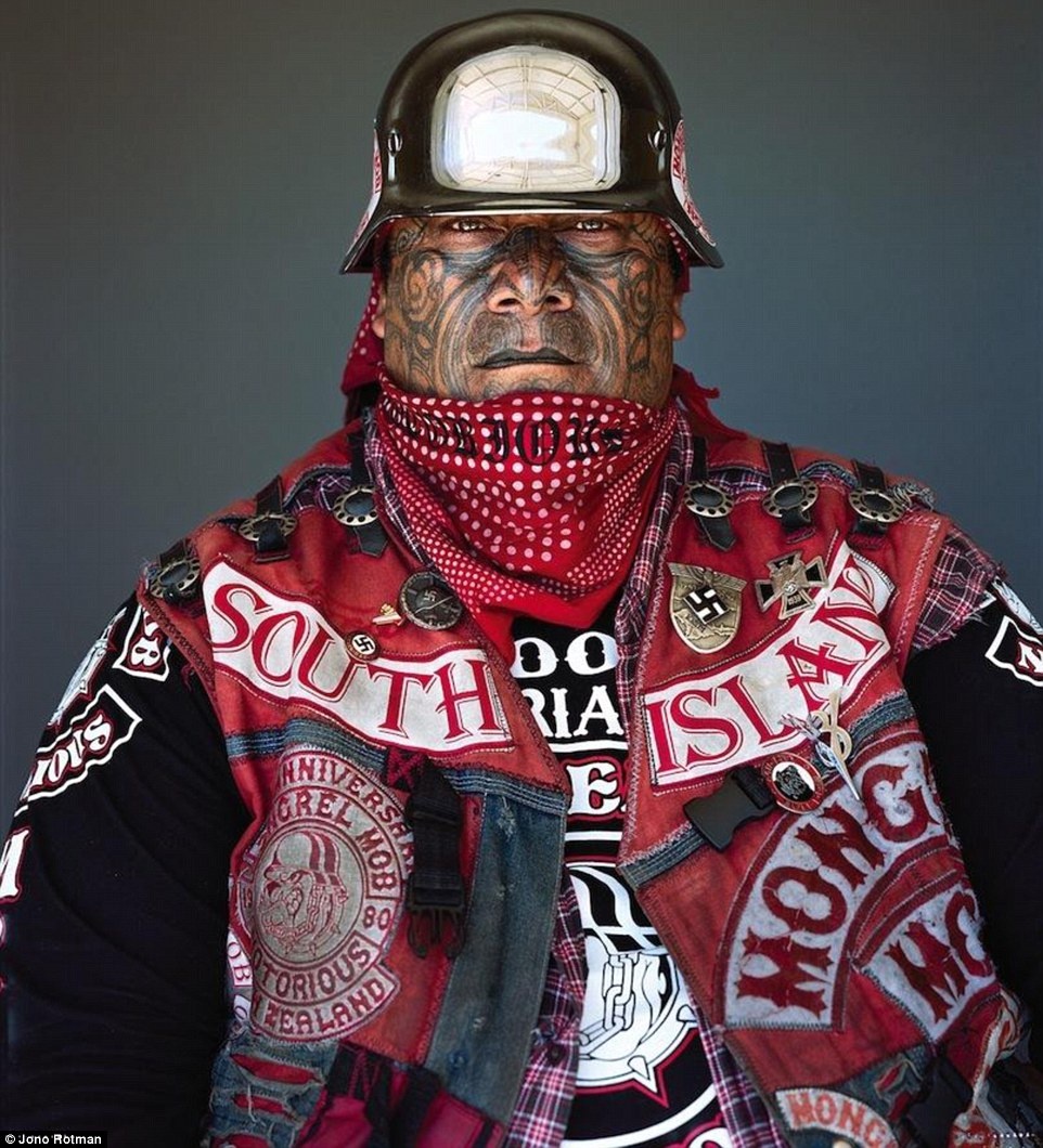 | Shane Harrison, thành viên của Mighty Mongrel Mob, băng xã hội đen khét tiếng nhất New Zealand, xuất hiện trong loạt ảnh mới của nhiếp ảnh gia Jono Rotman. Tác giả dành gần 8 năm (từ 2007 đến nay) để thâm nhập Mob và chụp những hình ảnh ấn tượng về văn hóa xăm hình, quy định và thậm chí một cuộc chạm trán đẫm máu giữa thành viên nhóm này với nhóm đối nghịch Black Power. |