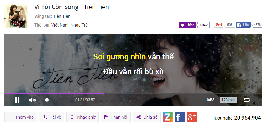 Bảng xếp hạng ca khúc tuần 49 của Zing Mp3 đang có nhiều xáo trộn. Mặc dù ở thời điểm này Tiên Tiên vẫn bảo vệ thành công ngôi đầu bảng nhưng cô cũng vấp phải nhiều đối thủ mới. Vì tôi còn sống tiếp tục nhận được sự ủng hộ nhiệt tình của người nghe song ca khúc mới của cặp đôi Phạm Hồng Phước – Thùy Chi đang đe dọa vị trí của học trò Thanh Bùi.