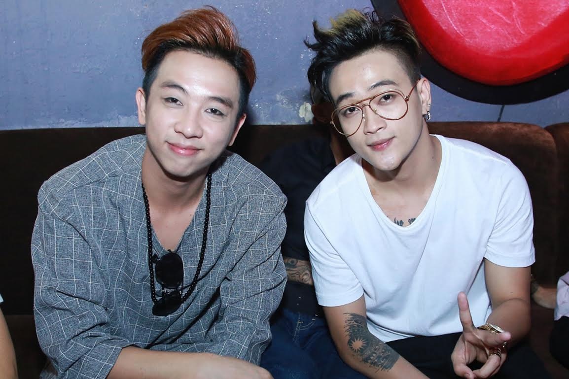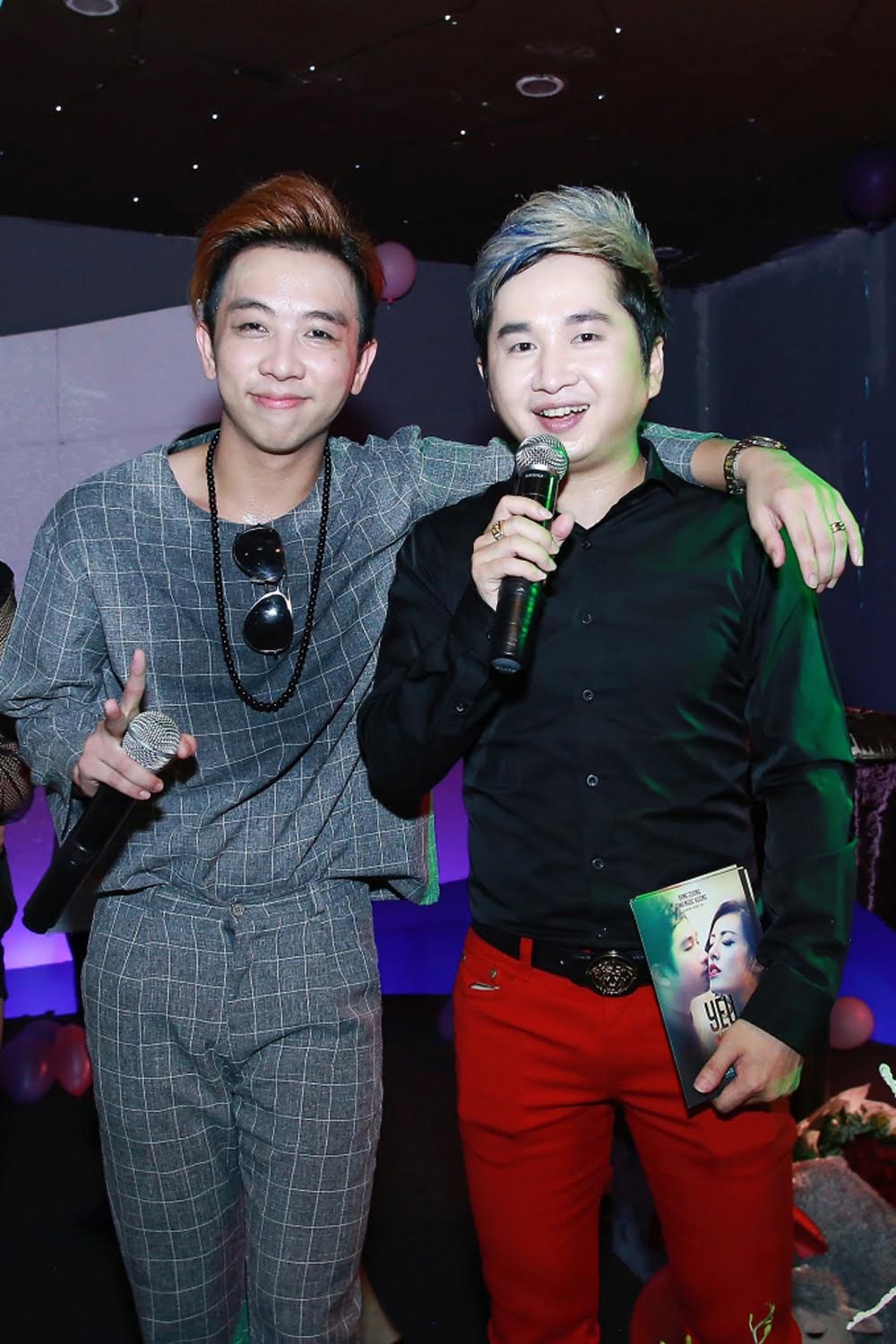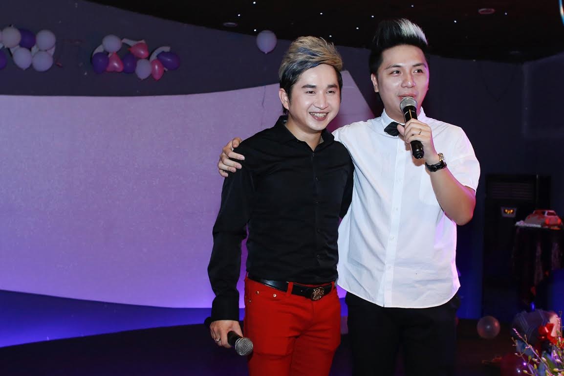 | Lý Tuấn Kiệt, thành viên của nhóm nhạc HKT chụp ảnh cùng Bằng Cường trong tiệc sinh nhật. |