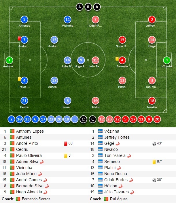 | Đội hình thi đấu trận giao hữu giữa Bồ Đào Nha và Cape Verde. |