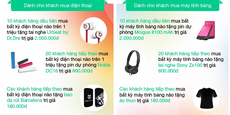 Khuyến mãi dành cho các khách hàng đầu tiên mua điện thoại hoặc máy tính bảng trên 1 triệu"