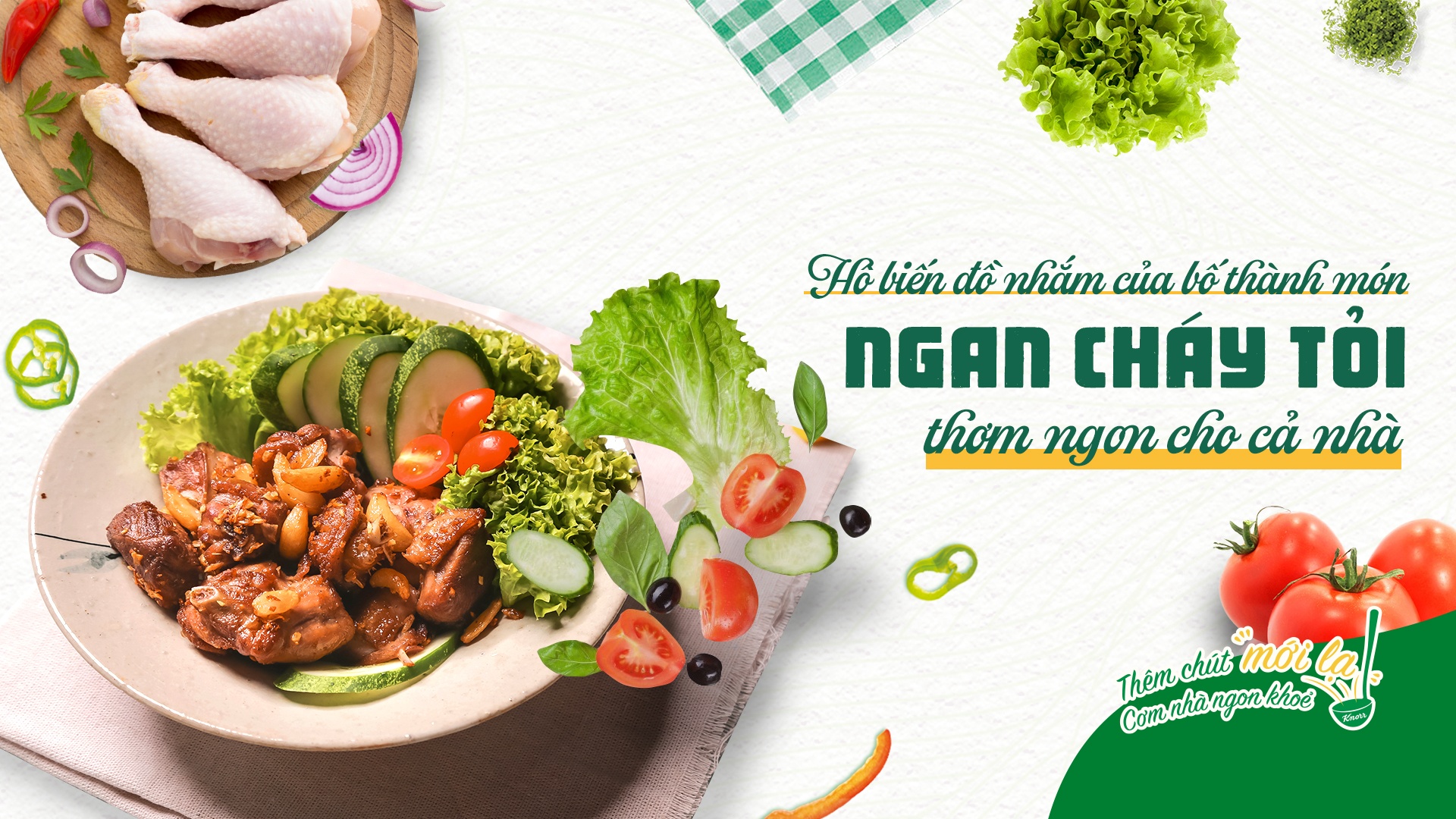 | Trình bàyLót vài lá xà lách xoăn, dưa chuột, cà chua lên đĩa. Xếp ngan và rắc các tép tỏi thơm vàng lên trên. Miếng ngan đậm đà, thơm lừng mùi tỏi sẽ mang đến cho cả nhà bữa ăn ngon miệng. Cầu kỳ hơn, bạn có thể pha nước chấm từ nước tương, tỏi băm, tương ớt và một chút đường sao cho hài hòa tròn vị. Không còn món ngan luộc hay nấu măng đã quá quen thuộc. Chỉ cần thêm vào một nguyên liệu là tỏi, mẹ đã có thể biến hóa món mới với công thức được chia sẻ bên trên. Bạn đọc có thể tham khảo thêm các món ăn mới lạ, dễ làm khác qua tuyến bài "Bí quyết cơm nhà ngon khỏe". |