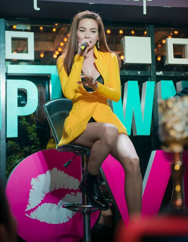 | Hồ Ngọc Hà diện trang phục vàng, khoe đôi chân dài và vòng một gợi cảm. Trong đêm nhạc, cô trình diễn liên tục 10 ca khúc như Không, Người Yêu Bé Nhỏ, Still Loving You, Tìm lại giấc mơ.... |