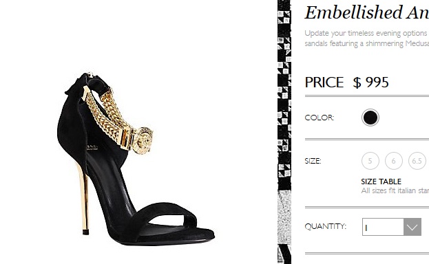 | Thiết kế thuộc dòng sản phẩm mới của Versace được bán trên website với giá hơn 600 USD. |