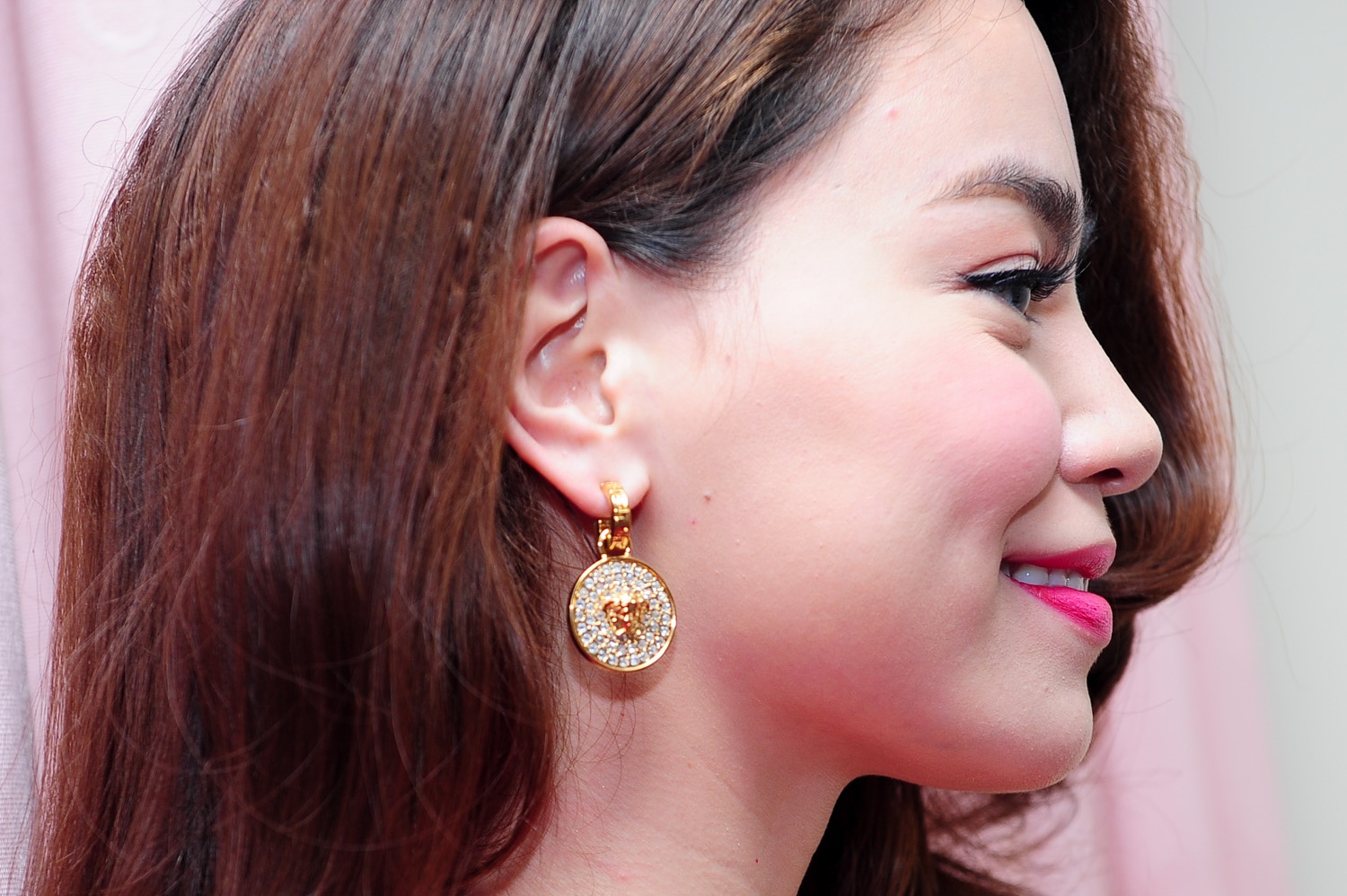 | Bộ hoa tai dáng tròn mix ăn ý trang phục và dàn phụ kiện đồng nhãn hàng. |