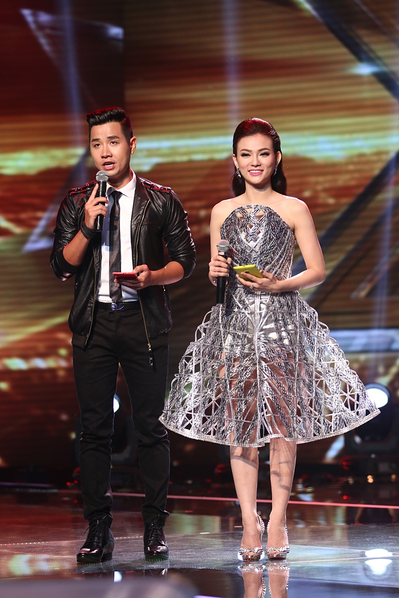 | Trên ghế nóng liveshow 4 của X Factor, Hồ Ngọc Hà nổi bật với hình ảnh táo bạo, cá tính. Cô diện bộ đầm thiết kế dạng dây, đan chéo trước ngực áo. Mẫu áo gây tò mò người đối diện được mix cùng chân váy có khóa kéo ở thân trước. Trang phục thể hiện sự mới mẻ, hợp hình ảnh mạnh mẽ mà "nữ hoàng giải trí" đang xây dựng.