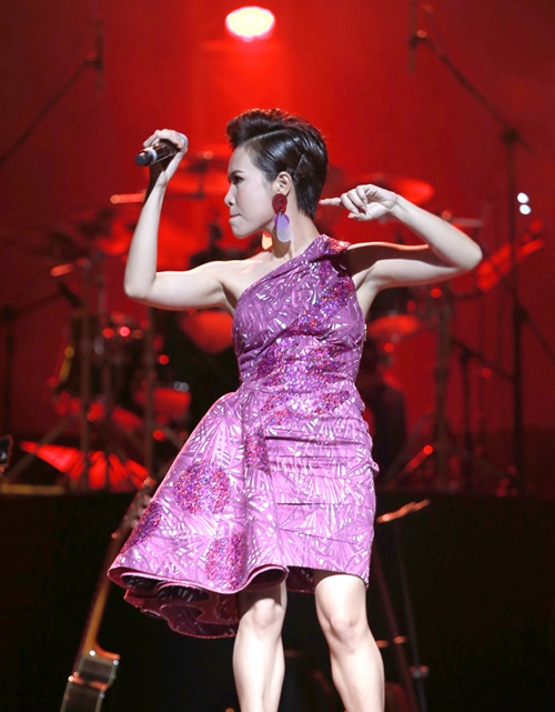 | Bộ đầm nữ tính gam tím, in họa tiết lạ mắt của NTK Lý Quí Khánh đưa Uyên Linh vào danh sách mỹ nhân mặc nổi bật nhất tuần qua. Bộ cánh không chỉ hợp vóc dáng người mặc mà còn chứng minh gu thẩm mỹ tinh tế, theo kịp xu hướng của Uyên Linh.
