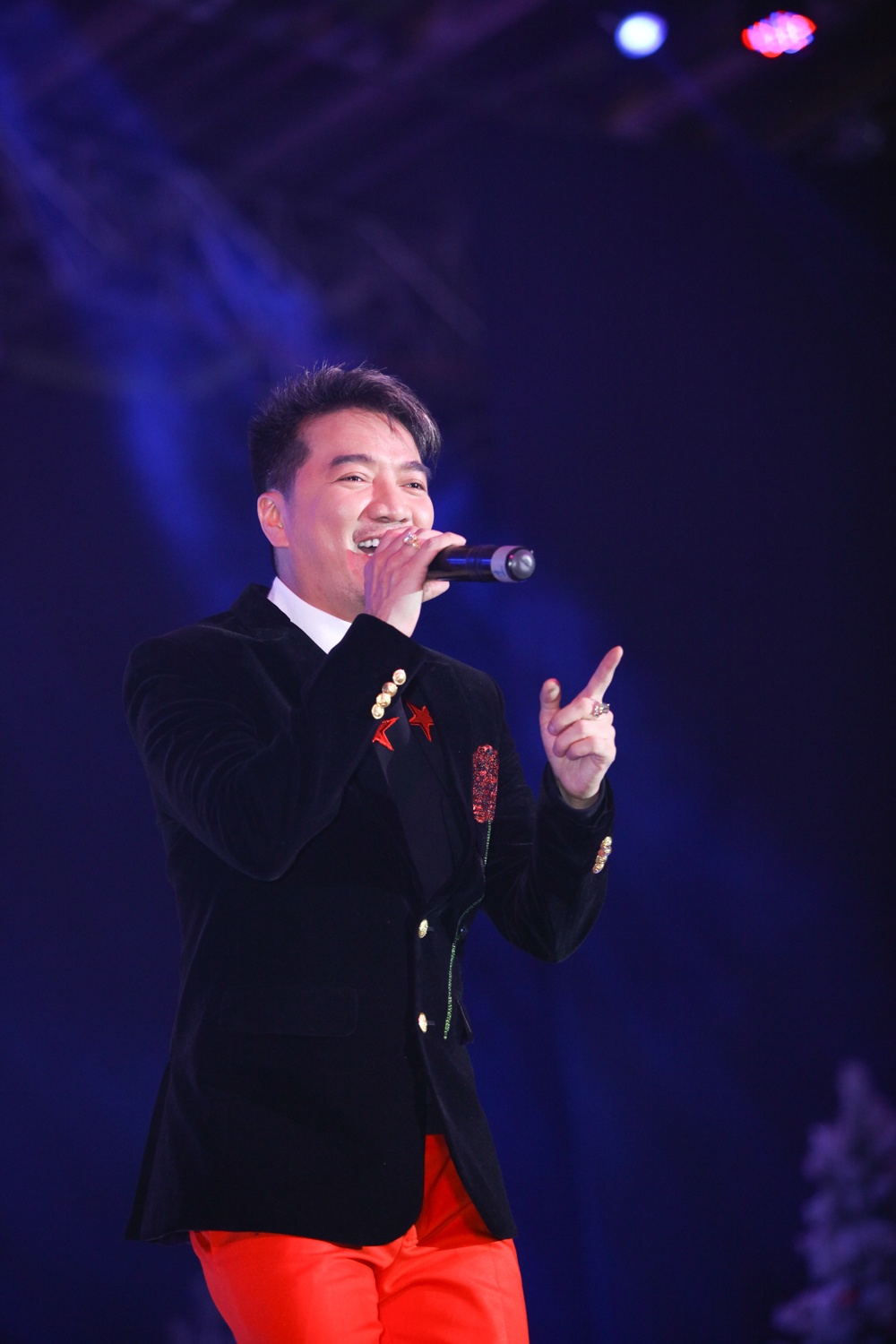 | Trường Giang đem đến tiết mục hài hước khiến khán giả cười sảng khoái. Từ liveshow Người miền Trung, năm 2009, diễn viên quê Quảng Nam thường không vắng mặt trong các show diễn của Mr. Đàm. |