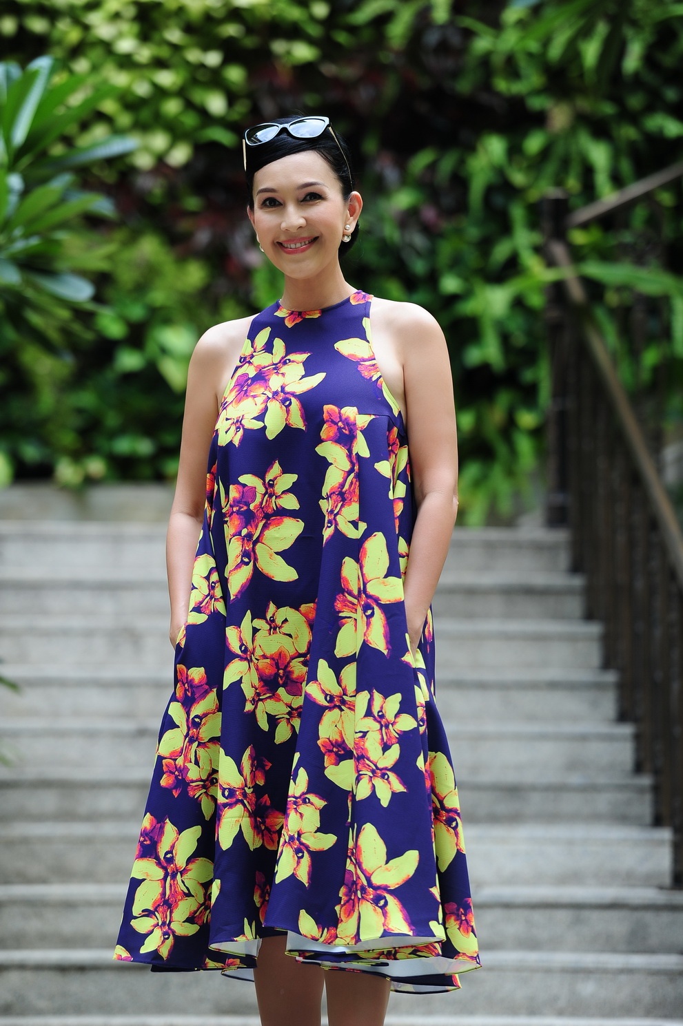 | "Người đẹp không tuổi" Diễm My diện bộ váy suông giấu vòng eo kém thon một cách khéo léo khi tham dự một sự kiện thời trang cuối tuần. Trang phục có phom dáng phóng khoáng, họa tiết nổi bật của NTK Đỗ Mạnh Cường mang lại nét trẻ trung cho nữ diễn viên. |
