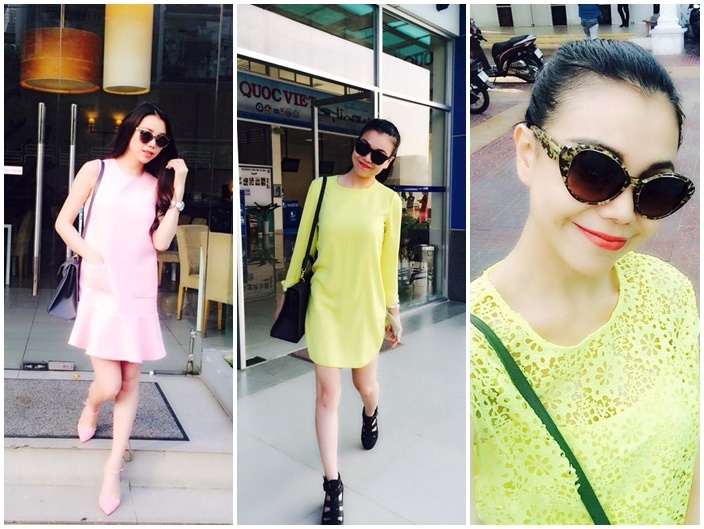 | Tuần này, Trà Ngọc Hằng khá nền nã với những tông màu pastel ngọt ngào. Váy loe tông hồng phấn khá duyên dáng, trẻ trung khi kết hợp cùng giày đồng tông. Gam màu vàng nổi bật phù hợp với xu hướng hiện nay. |