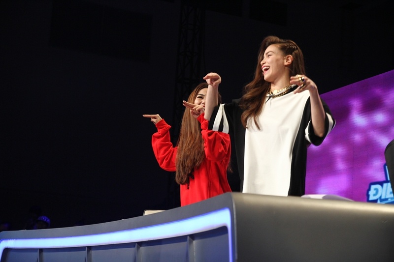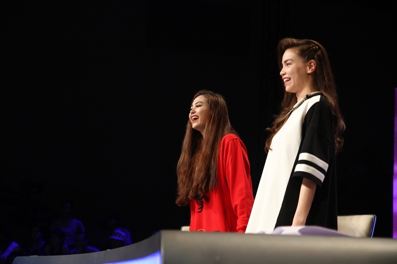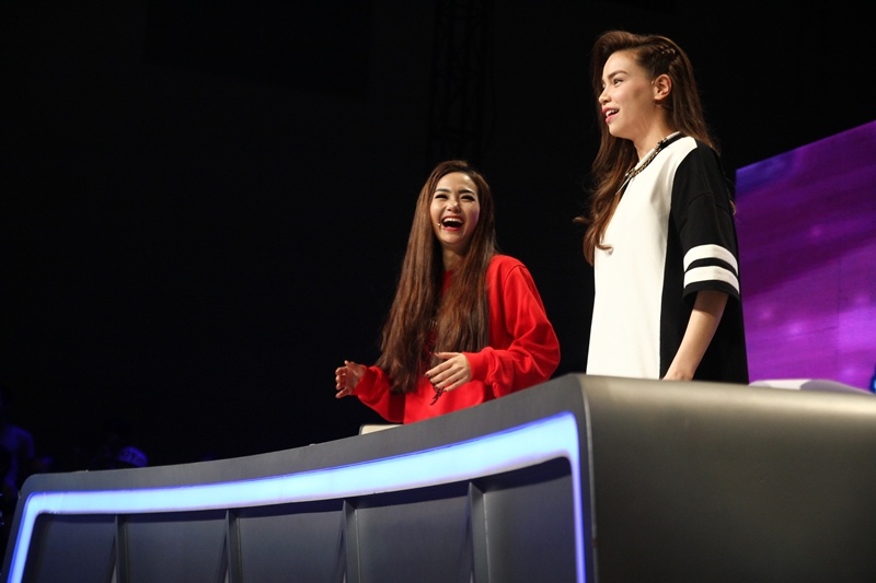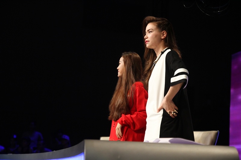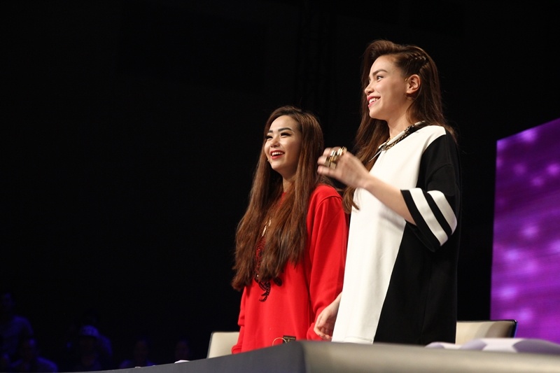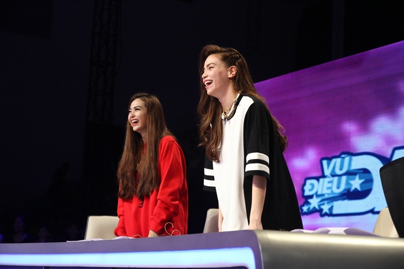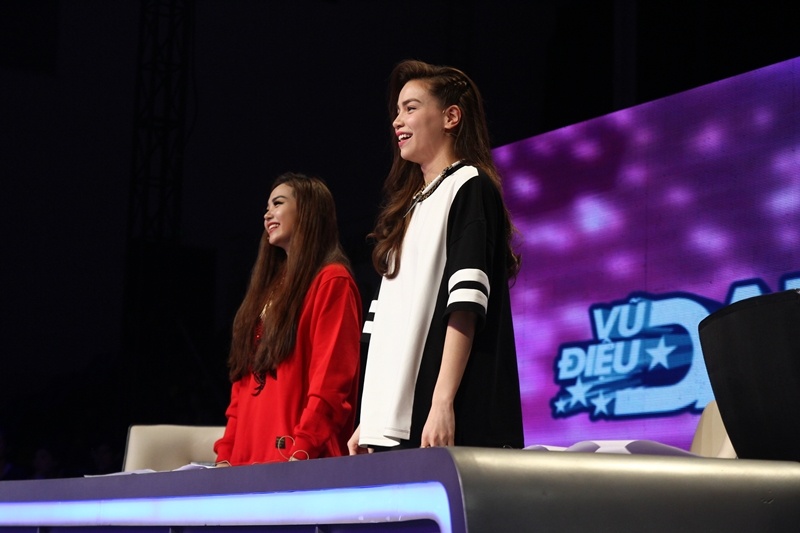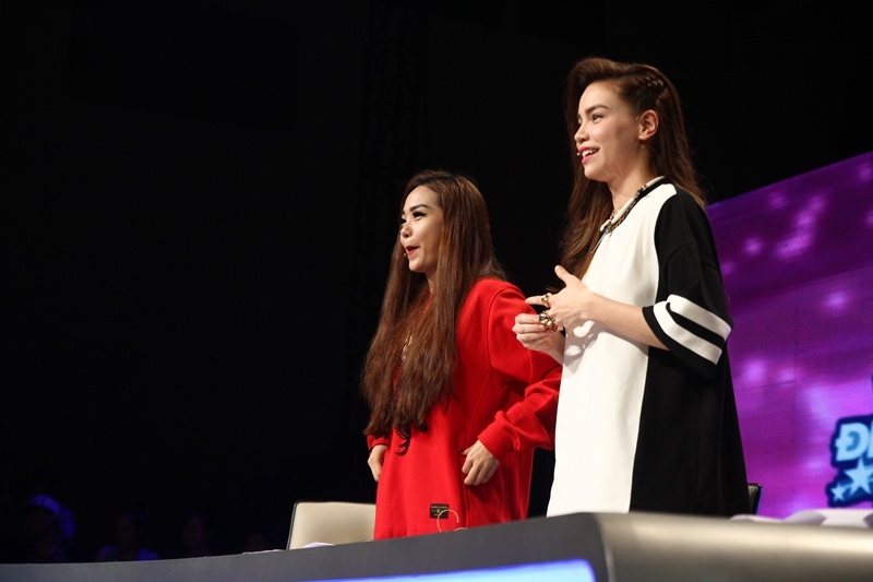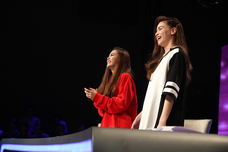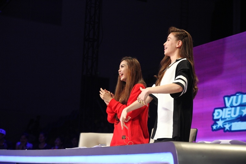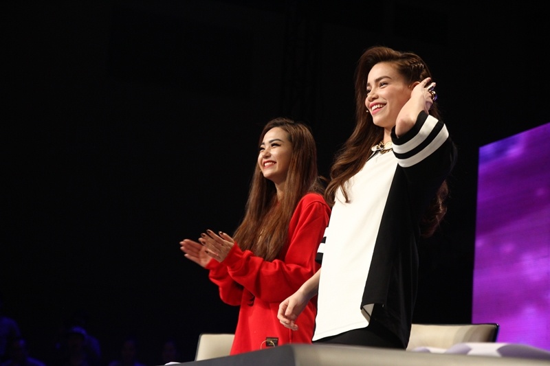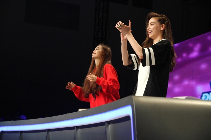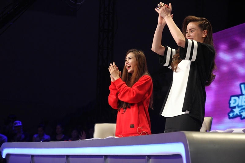 Không chỉ vỗ tay cổ vũ, hai nữ ca sĩ còn tỏ ra rất phấn khích. Họ liên tục reo hò, nhúng nhảy ngay trên ghế nóng. |