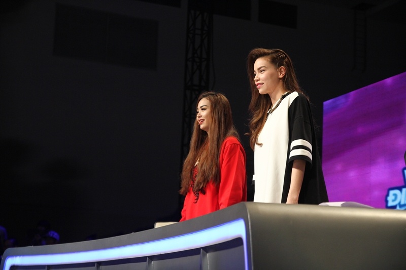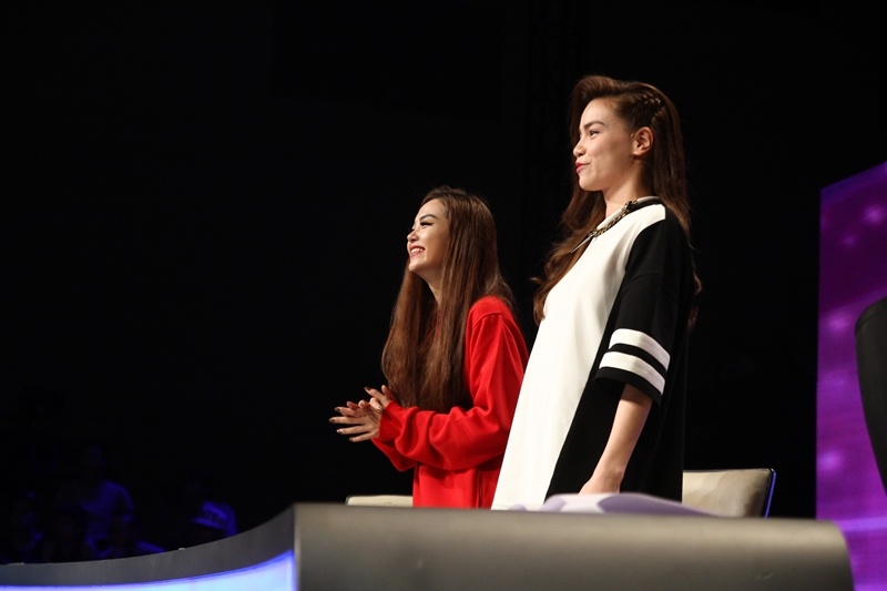 Hồ Ngọc Hà và Minh Hằng đều đứng bật dậy để ủng hộ hai người bạn đồng nghiệp. |