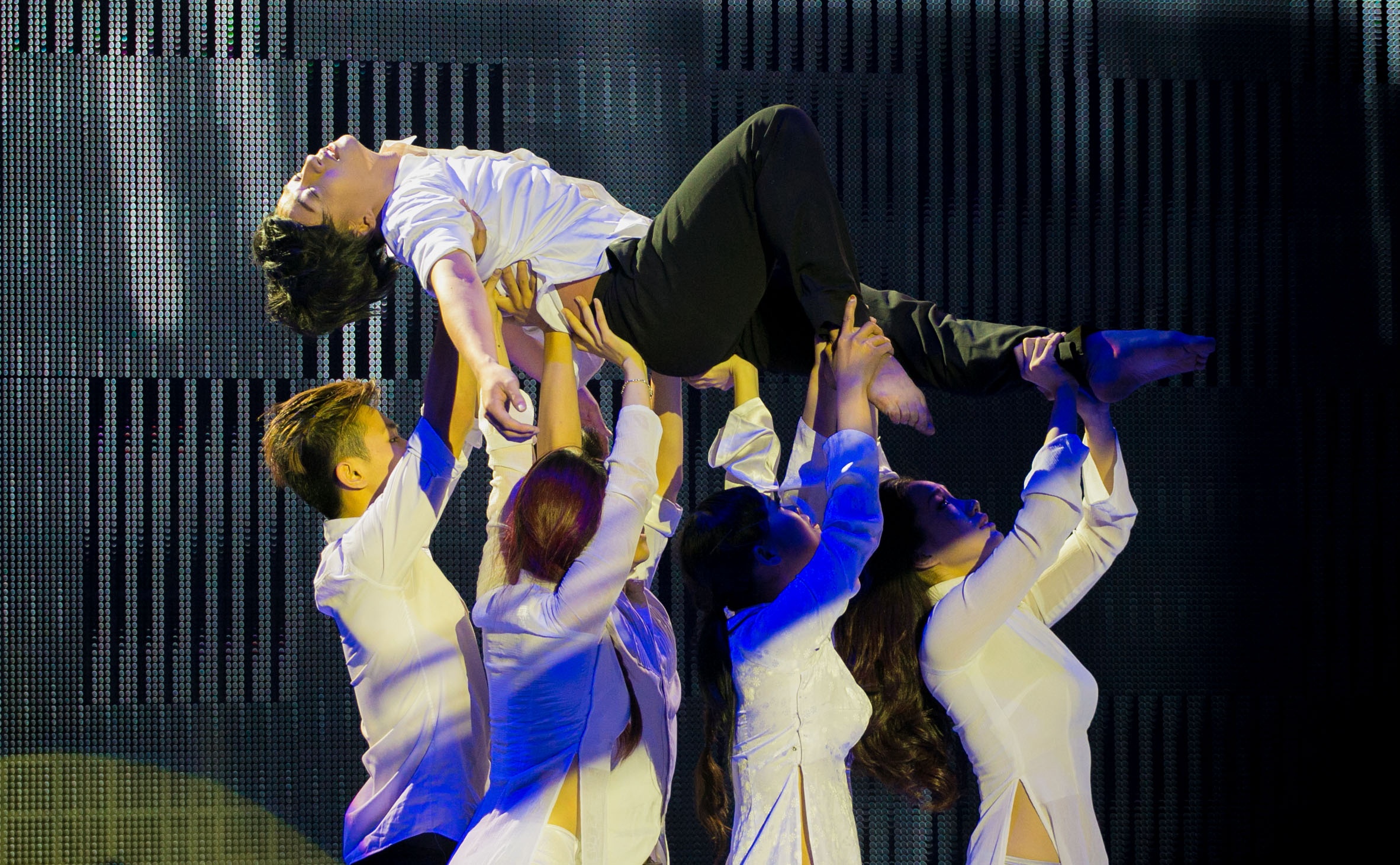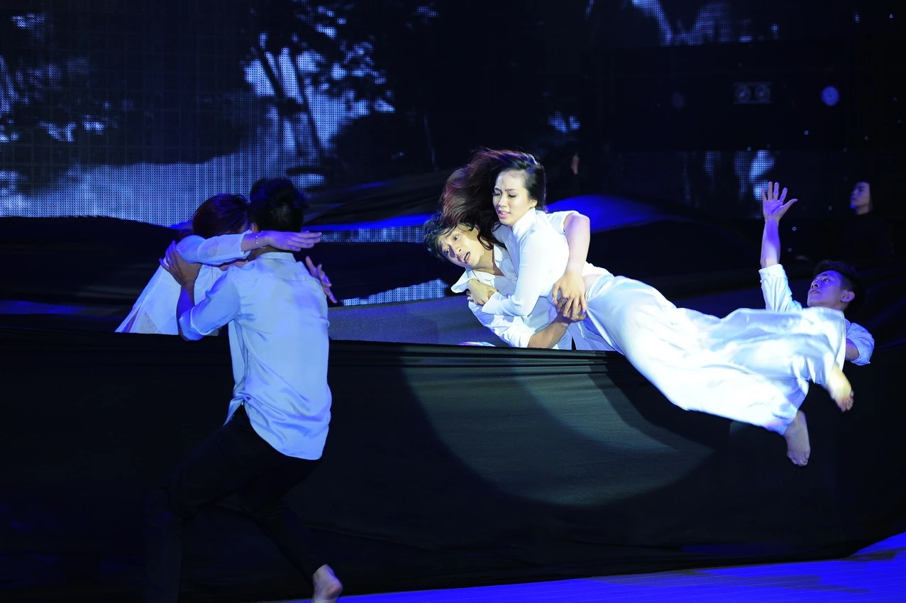 Tối qua, nhóm vào vai những người dân ở thành phố Hiroshima (Nhật Bản) – những người chịu ảnh hưởng trực tiếp từ vụ ném bom nguyên tử vào ngày 06/08/1945 và phải gánh chịu hậu quả hết sức nặng nề sau đó. |