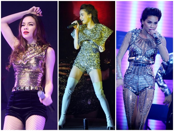 Sau liveshow, hình ảnh của Hồ Ngọc Hà gắn liền với trang phục kim loại nhiều hơn. Trên nhiều sân khấu lớn tại TP.HCM, ''Nữ hoàng giải trí'' để lại hình ảnh cá tính với những bộ váy tua rua ánh kim, jumpsuit nhũ bạc hay chân váy chất liệu vàng đồng...