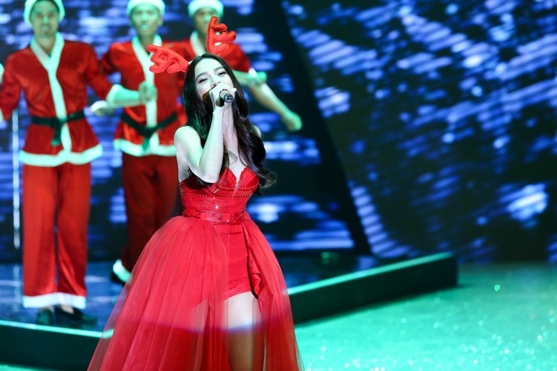 | Là khách mời đặc biệt trong đêm chung kết Vietnam's Next Top Model mùa thứ 4 diễn ra đêm qua (23/12), Hồ Ngọc Hà đảm nhận trọng trách mở màn với liên khúc We wish you a Merry Christmas. |