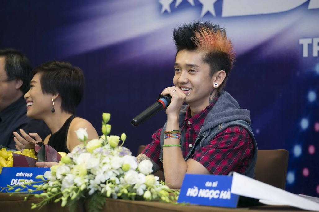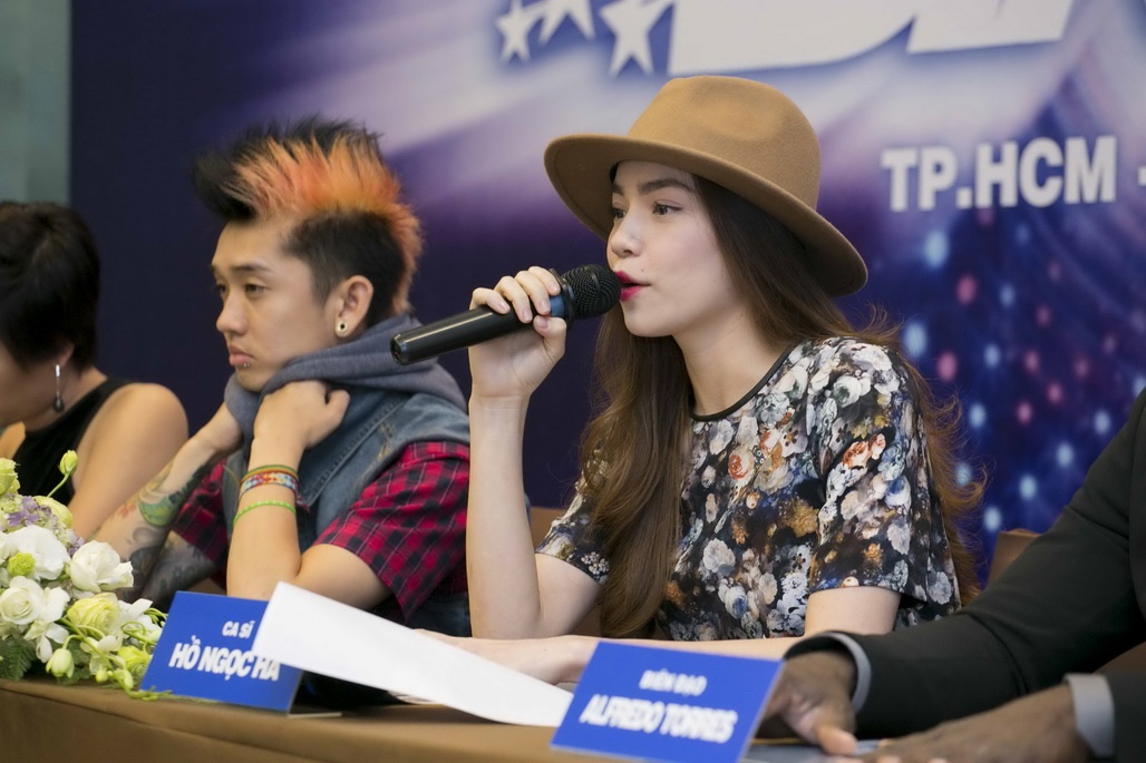 | Hồ Ngọc Hà thu hút mọi ánh nhìn khi xuất hiện trong buổi họp báo. |