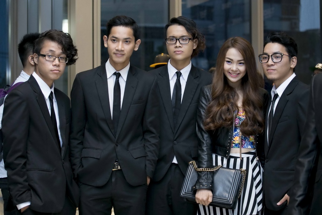 Đại diện BTC và bộ tứ giám khảo Trần Ly Ly, Dumbo, Hồ Ngọc Hà và Alfrido Torres. |