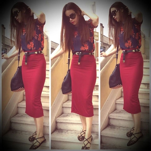 | Thông thường khi chọn áo hoạ tiết hoa thì bạn nên chọn chân váy một màu như Hồ Ngọc Hà nhé. Đương nhiên nên tinh ý chọn chân váy gam màu tương tự như gam màu của hoa. Không nên chọn áo và váy cùng hoạ tiết sẽ rất lố bịch. |