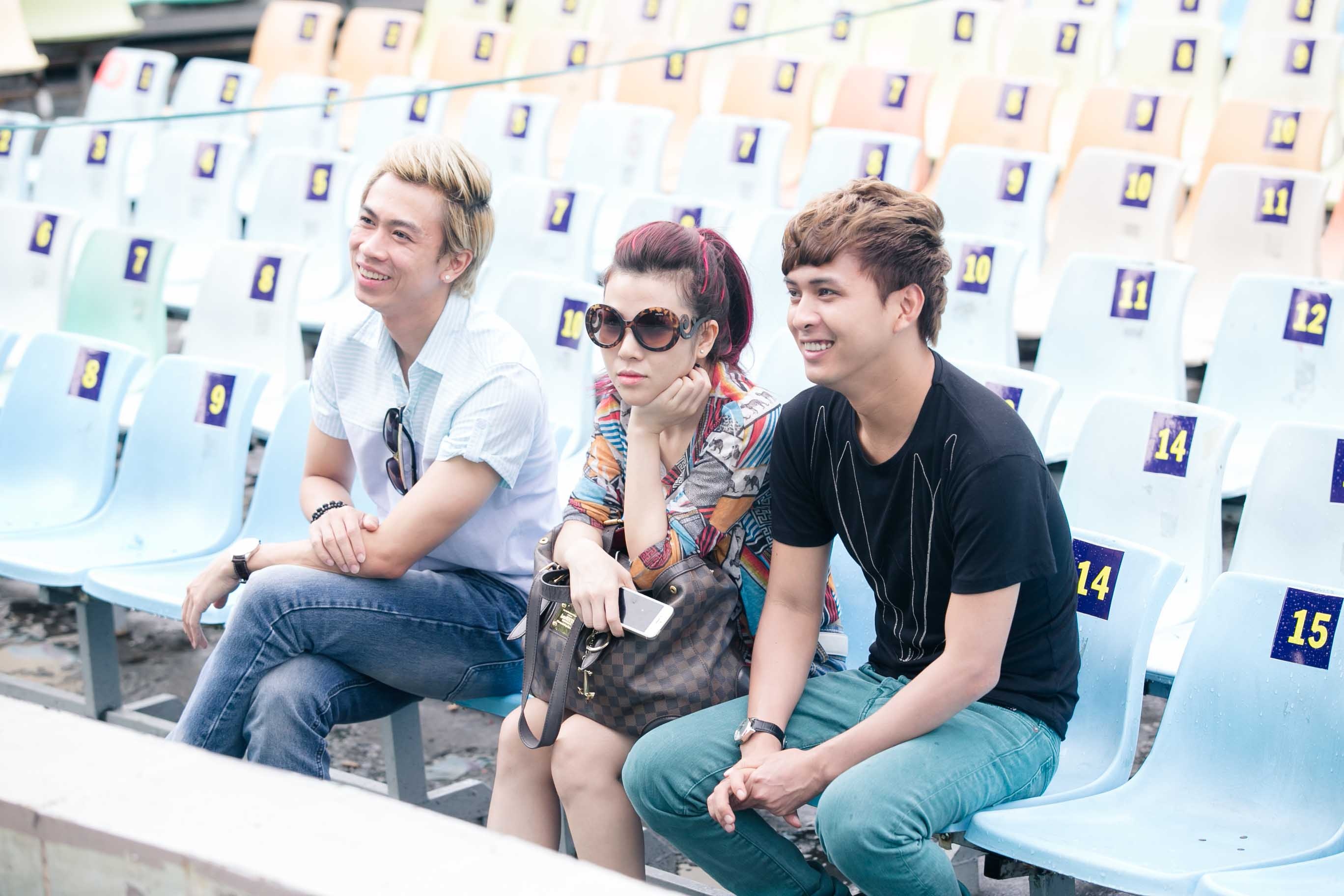 | Góp mặt trong buổi tổng duyệt còn có nam ca sĩ Hồ Việt Trung và DJ Thuý Khanh. Vì mới trải qua chuyện buồn sẩy thai nên Thuý Khanh hầu như không cười trong suốt buổi tổng duyệt. |