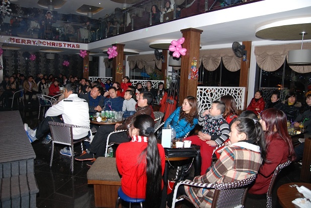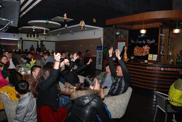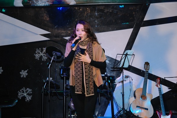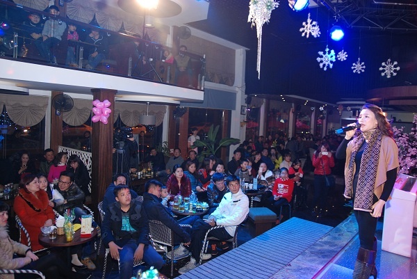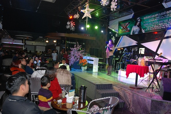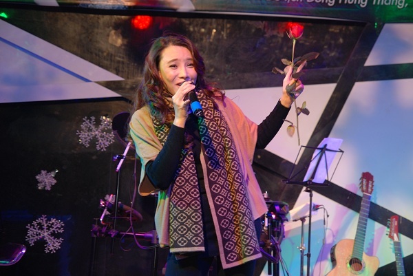 | Thậm chí có người còn xung phong hát cùng Hồ Quỳnh Hương và không quên tặng cô một bông hồng đỏ thắm như món quà Valentine. |