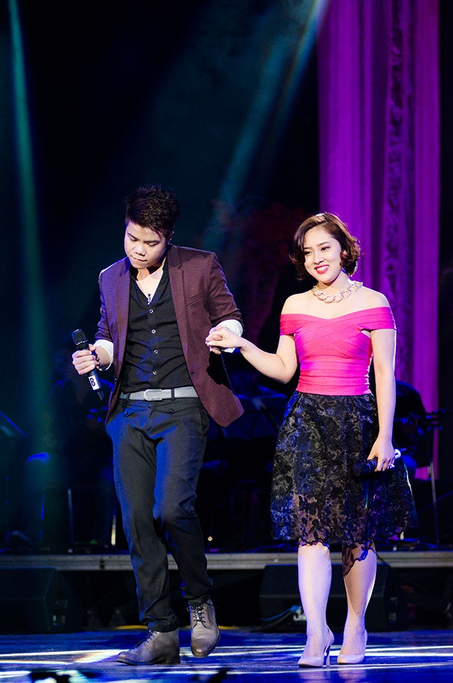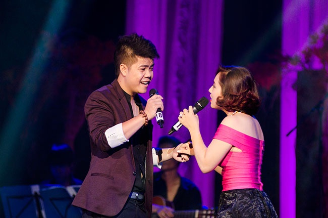 | Trong khi Đinh Mạnh Ninh tình tứ bên Bảo Trâm Idol. Với phần trình diễn "Về nơi bình yên", cặp đôi thực sự ghi điểm trong lòng khán giả. |