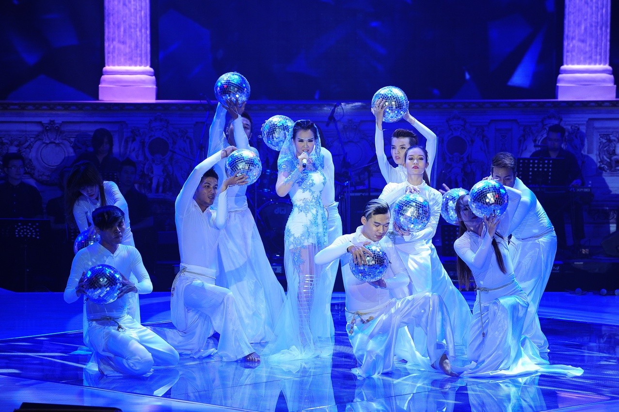 Không khí sôi động, vui tươi đồng thời mang màu sắc của xứ sở thiên đường hòa trong vẻ xinh đẹp của "nàng tiên cá" giúp cô có phần biểu diễn khác lạ. |