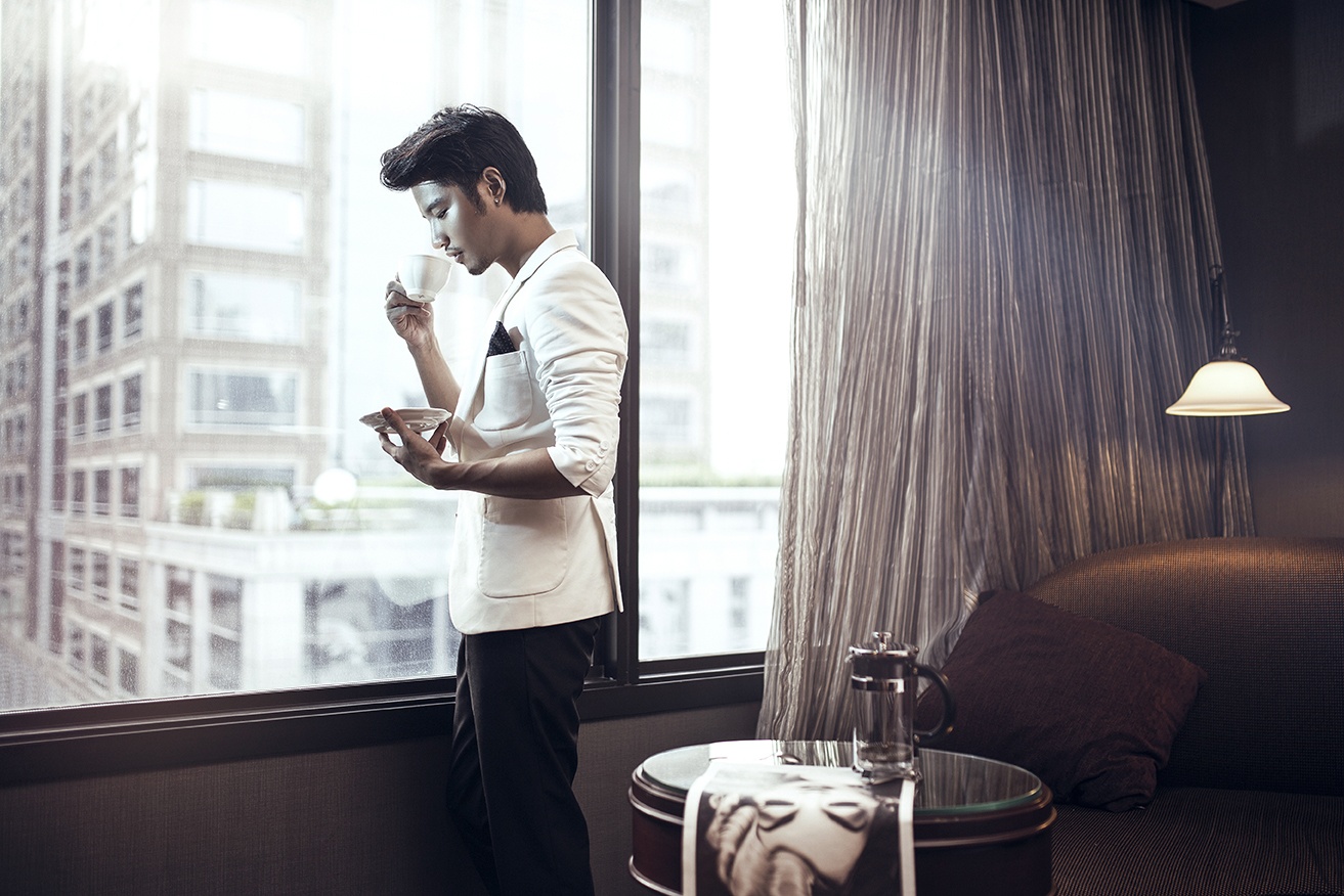 | Trong bối cảnh sang trọng, nam diễn viên tự tin khoe vẻ quyến rũ, phong trần. |