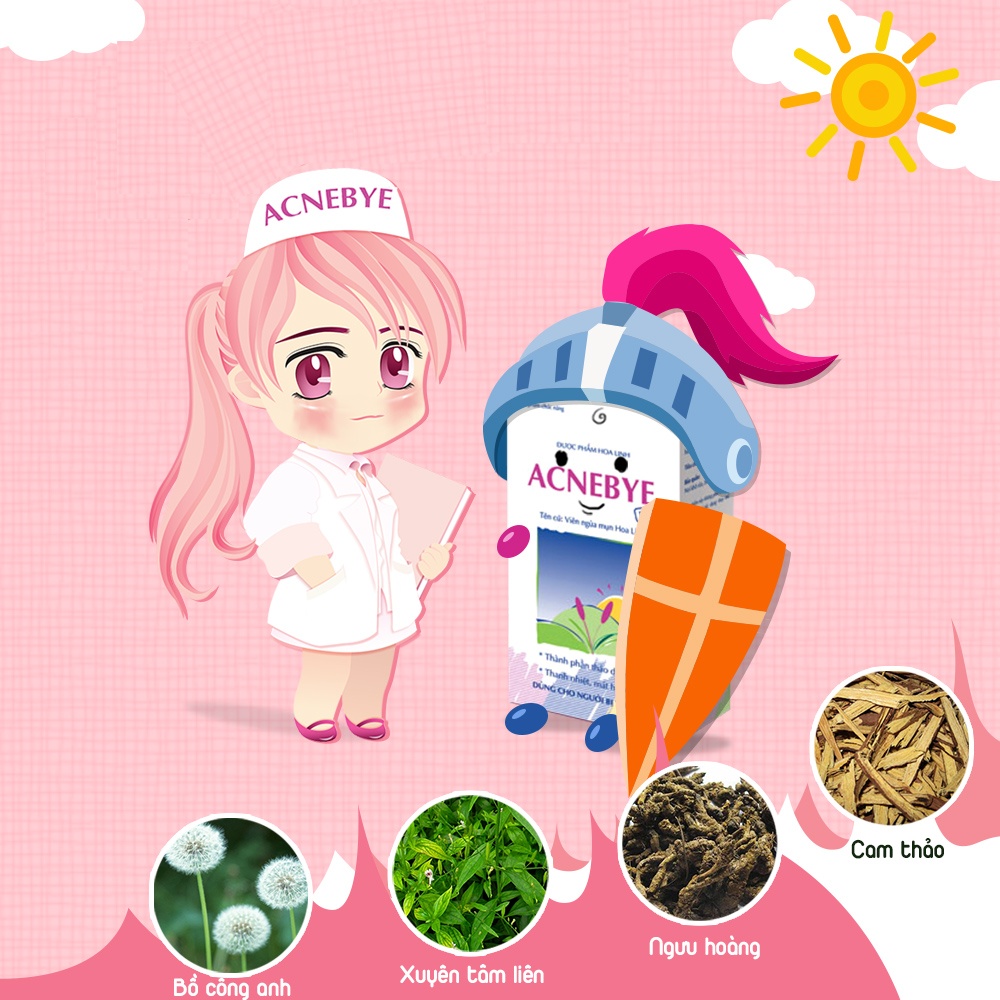 Thực phẩm chức năng ACNE BYE có nguồn gốc từ bài thuốc cổ phương, gồm các vị dược liệu như bồ công anh, ngưu hoàng, kim ngân hoa, xuyên tâm liên…, được bào chế dạng viên nang, thuận tiện khi sử dụng. ACNE BYE giúp thanh nhiệt, mát huyết, tiêu viêm, trừ nhiệt độc tích tụ trên da, góp phần giúp ngăn, mụn mọc thêm, giảm mụn tái phát. Đặc biệt, sản phẩm hiệu quả hơn với các trường hợp mụn trứng cá do nhiệt. Ngoài ra có thể dùng kết hợp ACNE BYE với các thuốc dùng ngoài khác giúp hỗ trợ điều trị, giúp mụn nhanh khỏi hơn, ít tái phát hơn.