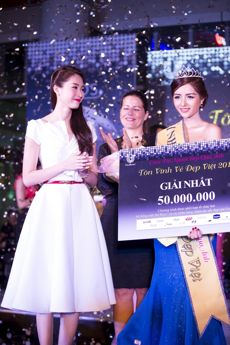 | Trên ''ghế nóng'' cô đảm nhận tốt vai trò chấm giải của mình, những hình ảnh của hoa hậu được ghi lại khá tự nhiên nhưng toát lên vẻ đẹp dịu hiền và duyên dáng vốn có của người đẹp. |