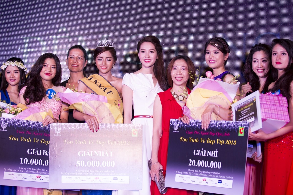 Hoa hậu Việt Nam 2012 chụp ảnh cùng các thí sinh đoạt giải cuộc thi.