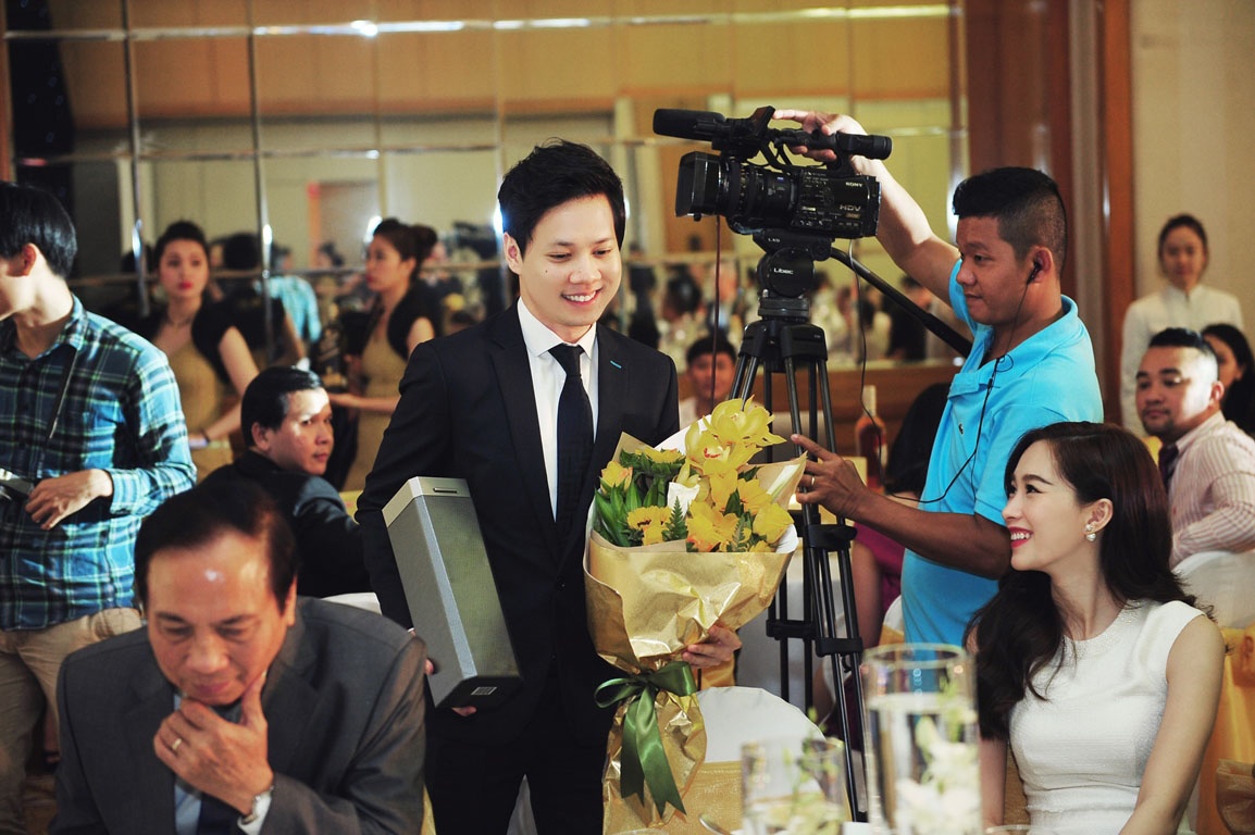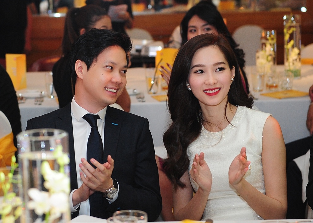 Dù chưa khẳng định mối quan hệ, nhưng cặp đôi Thu Thảo - đại gia Trung Tín vẫn thoải mái thể hiện tình cảm trên bàn tiệc, trong một sự kiện gần đây.