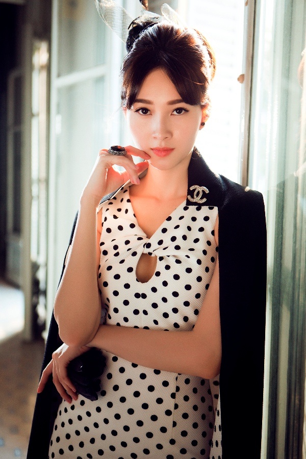 Nếu những bộ ảnh trước, cô nàng thể hiện sự thanh lịch, hiện đại, lần này cô lại tôn vinh những nét đẹp cổ điển, tinh khôi, trong sáng.