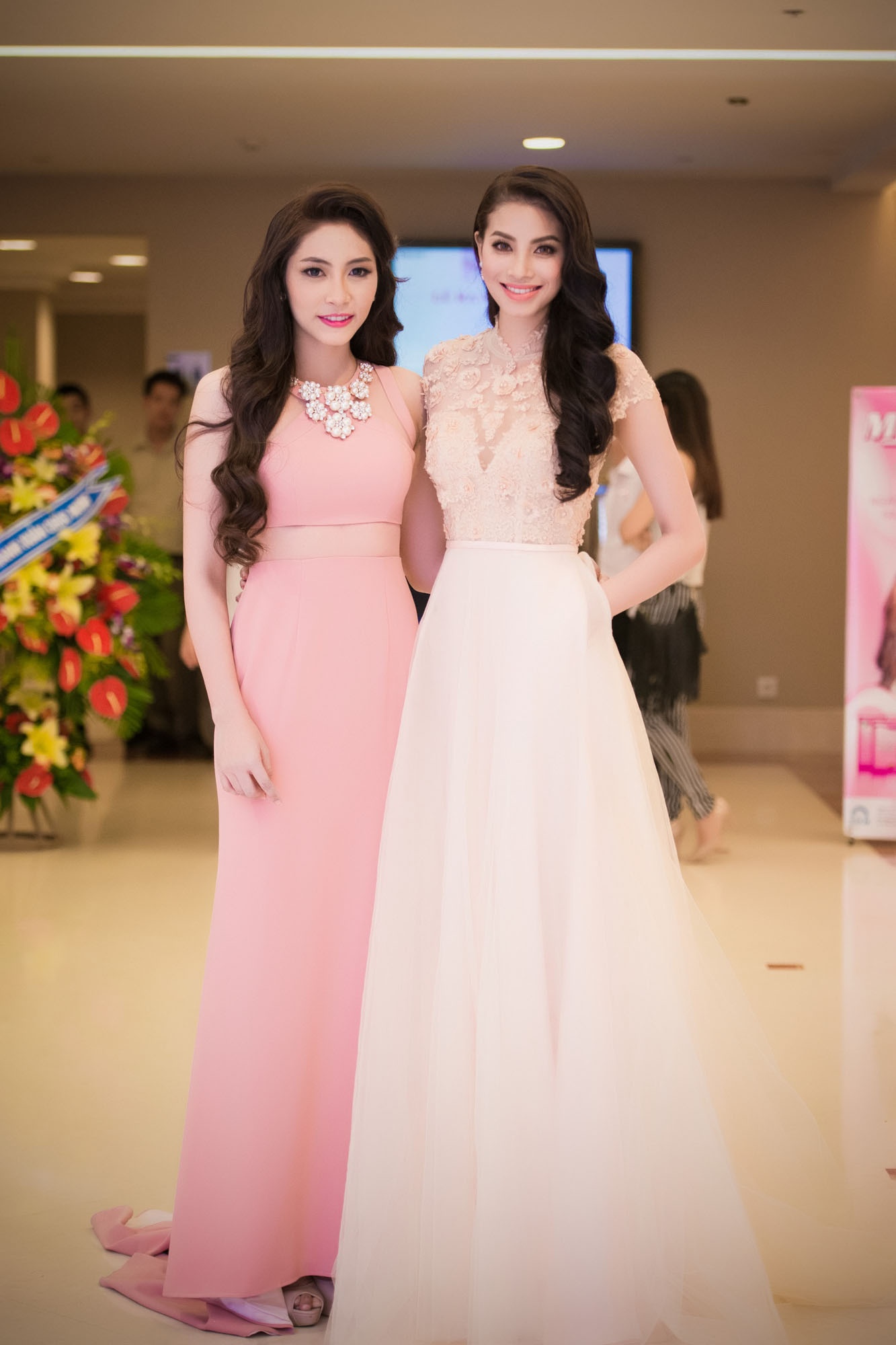 Cũng trong sự kiện này, người đẹp Phạm Hương chọn cho mình một thiết kế hoa ren của John Kim. Bộ đầm với gam màu nhã nhặn, nhẹ nhàng, thanh thoát giúp tôn đường cong quyến rũ của người mặc. Phạm Hương gây ấn tượng với tông trang điểm nhẹ nhàng, tuy nhiên, việc chọn kính áp tròng chưa phù hợp khiến người đẹp bị mất điểm.