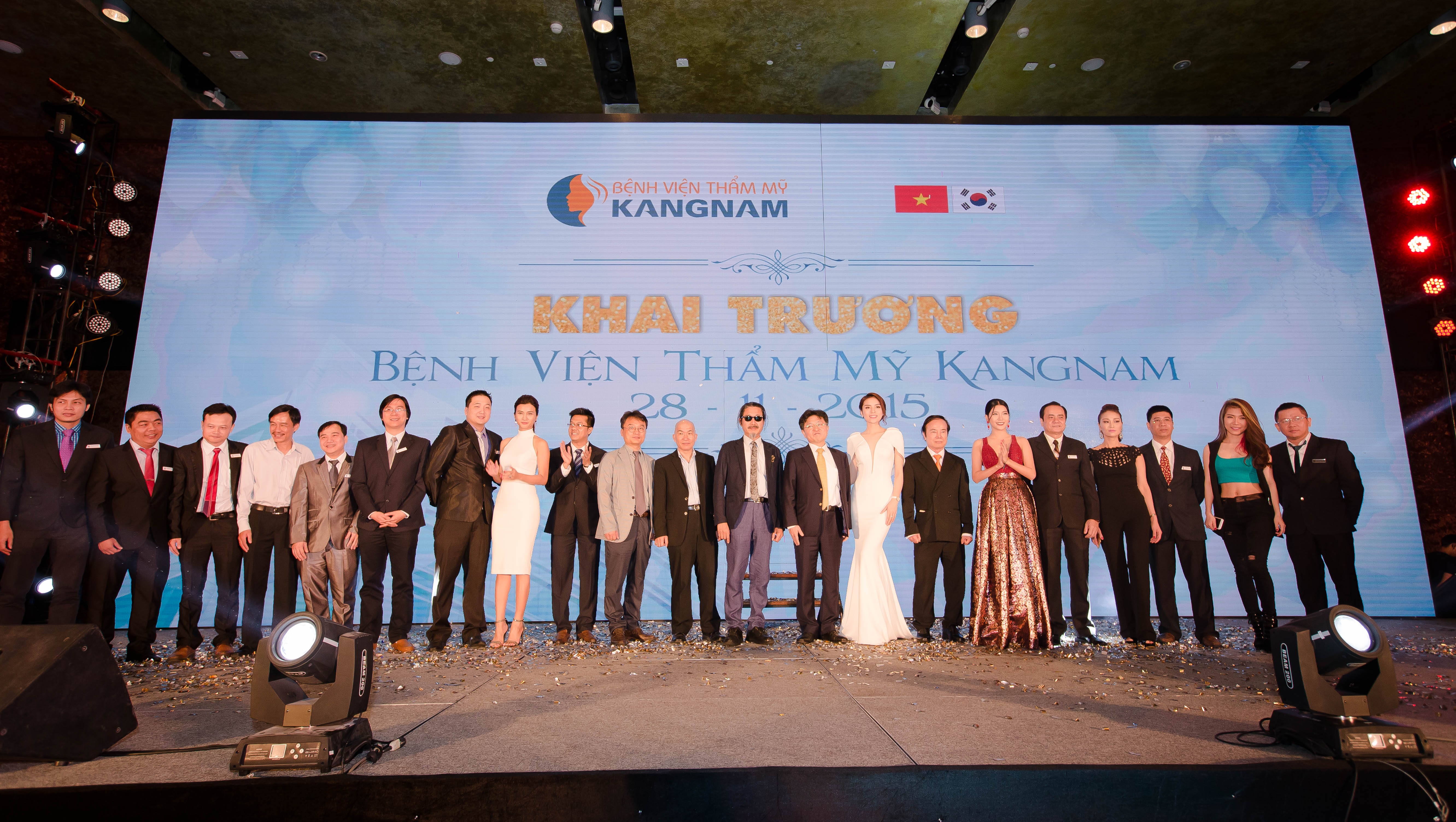 | Hoa hậu Kỳ Duyên cùng dàn sao chụp hình với ban lãnh đạo bệnh viện thẩm mỹ Kangnam cùng với Chủ tịch Hiệp hội Phẫu thuật thẩm mỹ Hàn Quốc Kang Kyoung Yin. |
