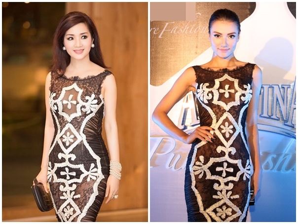 Trương Ngọc Ánh và Trà Ngọc Hằng "đụng hàng" thiết kế gợi cảm của thương hiệu Dior. Tuy mặc chung một thiết kế giống hệt nhau, song Trà Ngọc Hằng lại nhận được ý kiến khen ngợi là trông cuốn hút hơn khi biết tận dụng những điểm nhấn sexy trên trang phục.