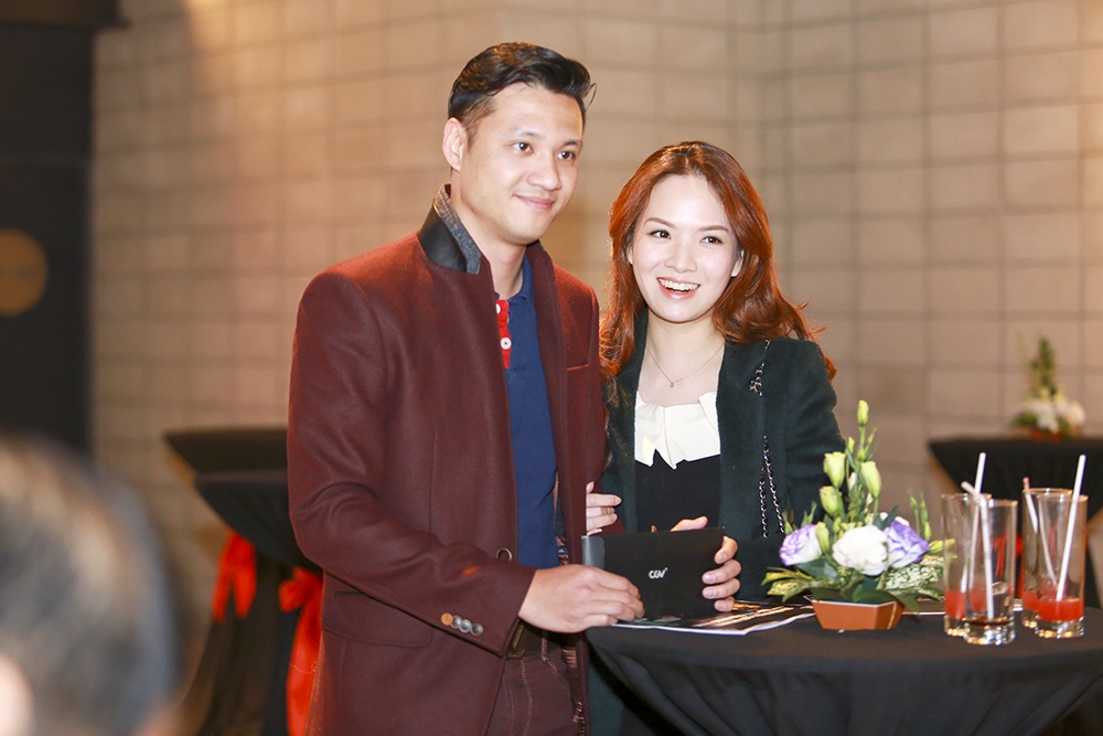 | Vợ chồng Đan Lê - Khải Anh tình tứ tại sự kiện ra mắt phim. |