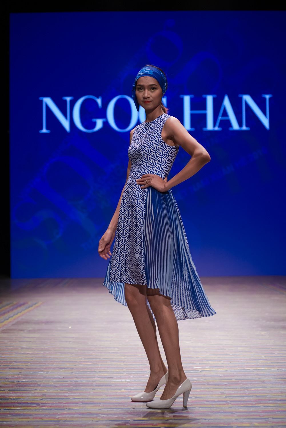 | Tối 25/9 vừa qua, Ngọc Hân vinh dự là nhà thiết kế mở màn Tuần lễ thời trang Việt Nam xuân hè 2016 với BST thời trang xuân hè lấy ý tưởng từ những hoạ tiết men gốm lam và hoa phù dung được ứng dụng công nghệ in kĩ thuật số. |