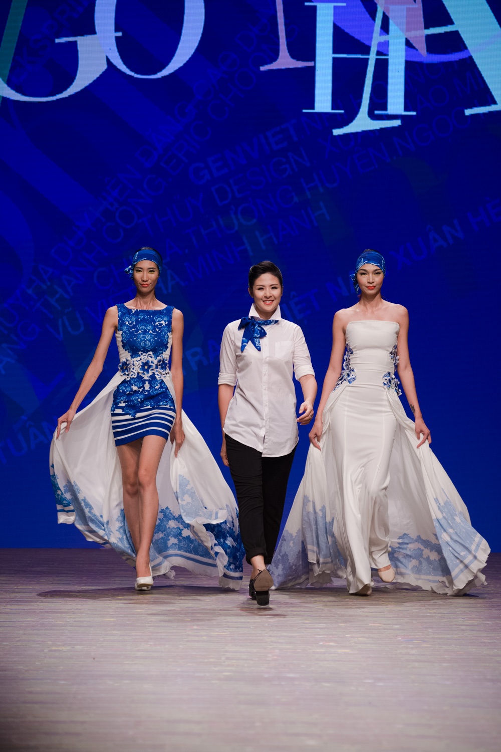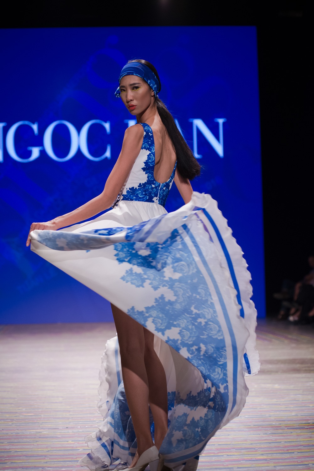 Bộ sưu tập mang hơi hướng hoa văn men gốm truyền thống Việt Nam của Hoa hậu Ngọc Hân nhận được nhiều lời khen ngợi trong buổi ra mắt Vietnam Fashion Week Spring Summer 2016.