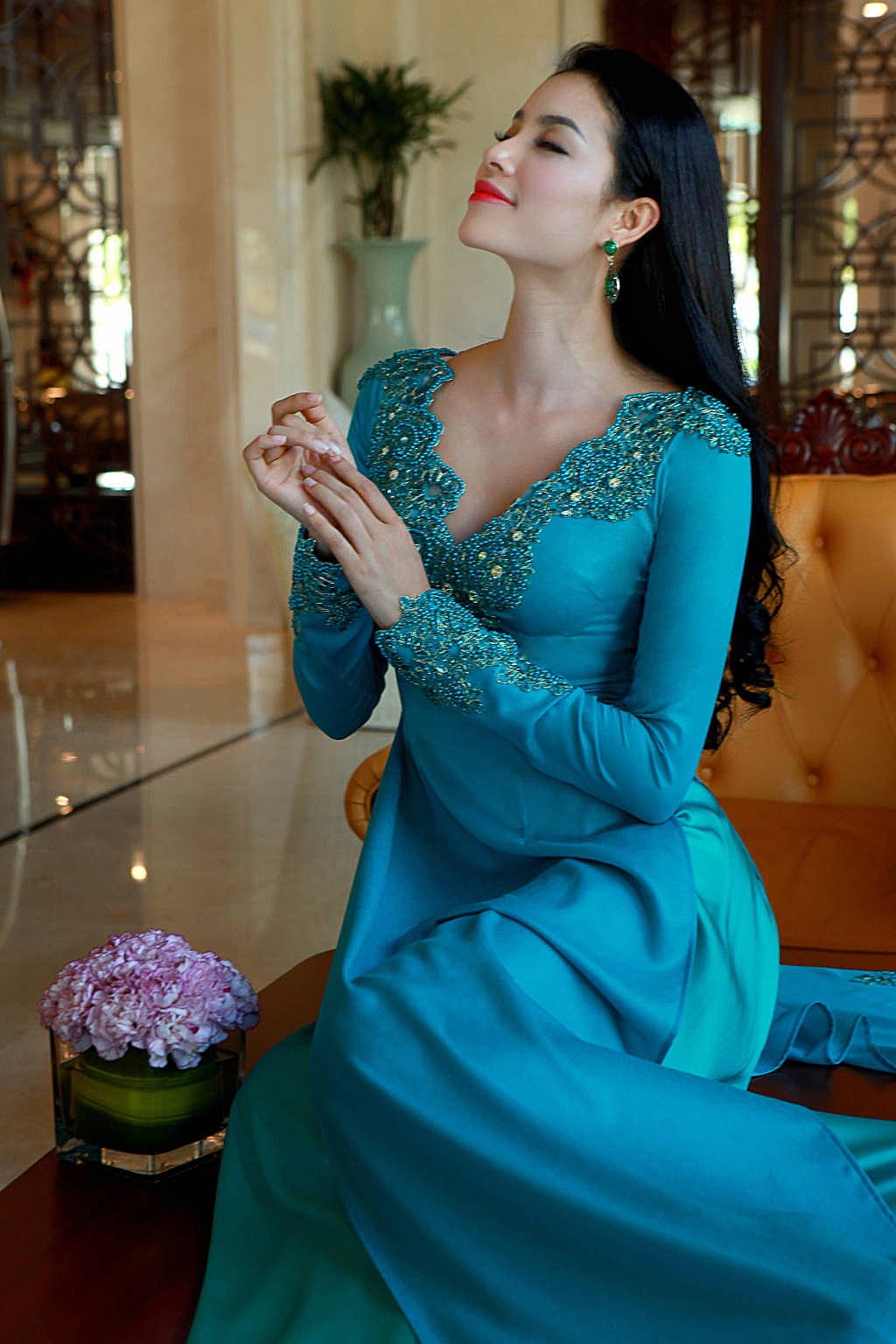 Hoa hậu Phạm Hương duyên dáng áo dài cách tân